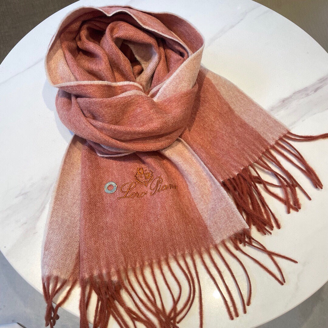 LP Grande Unita Scarf 180 CM In Coral Pink Mix Light Pink Cashmere 193786