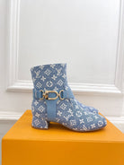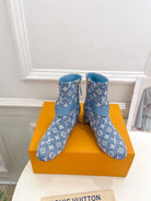 LV Ankle Boots 35mm Light Blue Monogram Jacquard Fabric