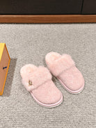 LV Flat Mule Pink With Fur Monogram Suede