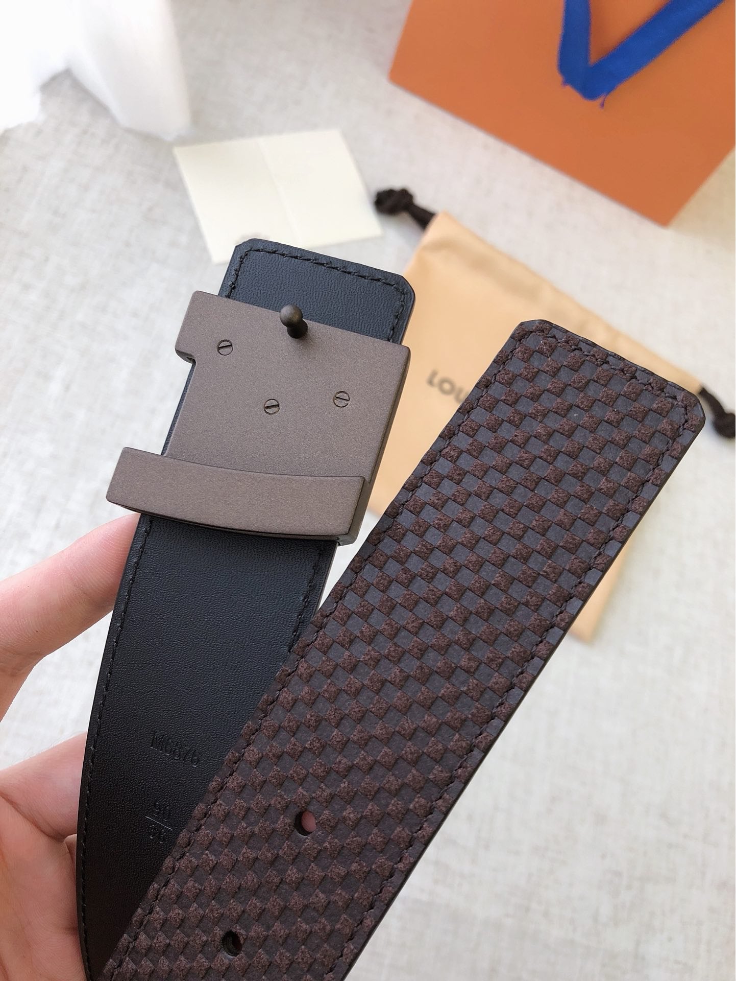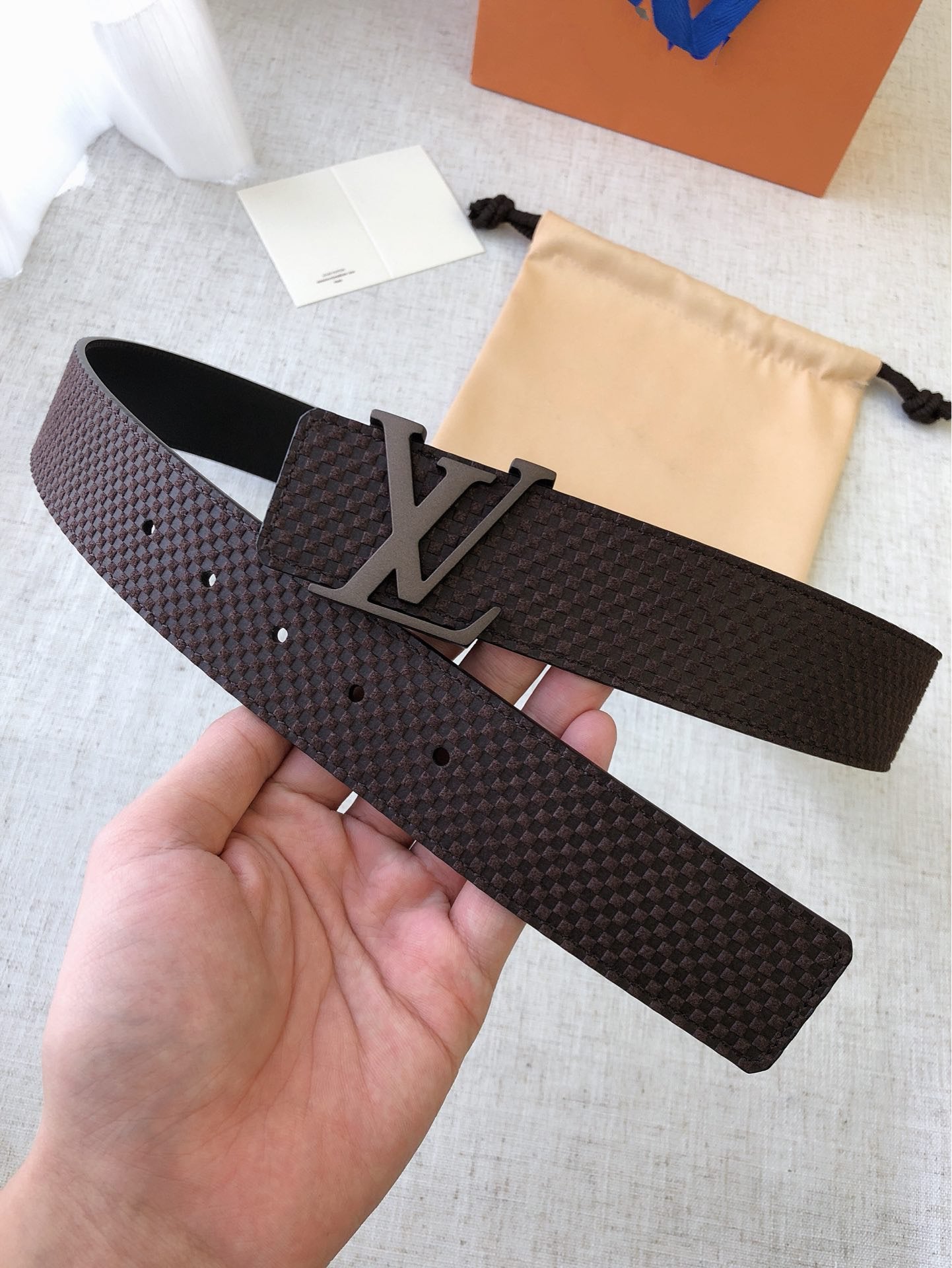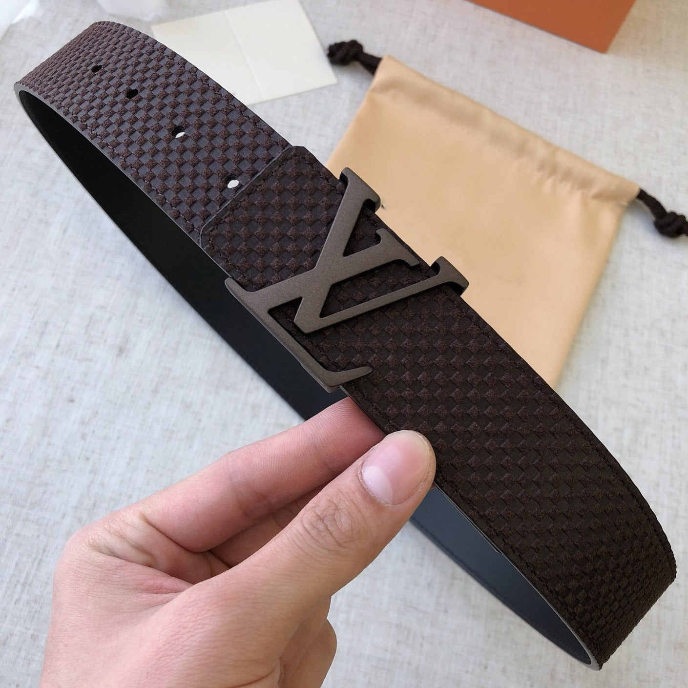 LV 40MM BELT BROWN BUCKLE EMBOSSED BROWN BLACK LEATHER