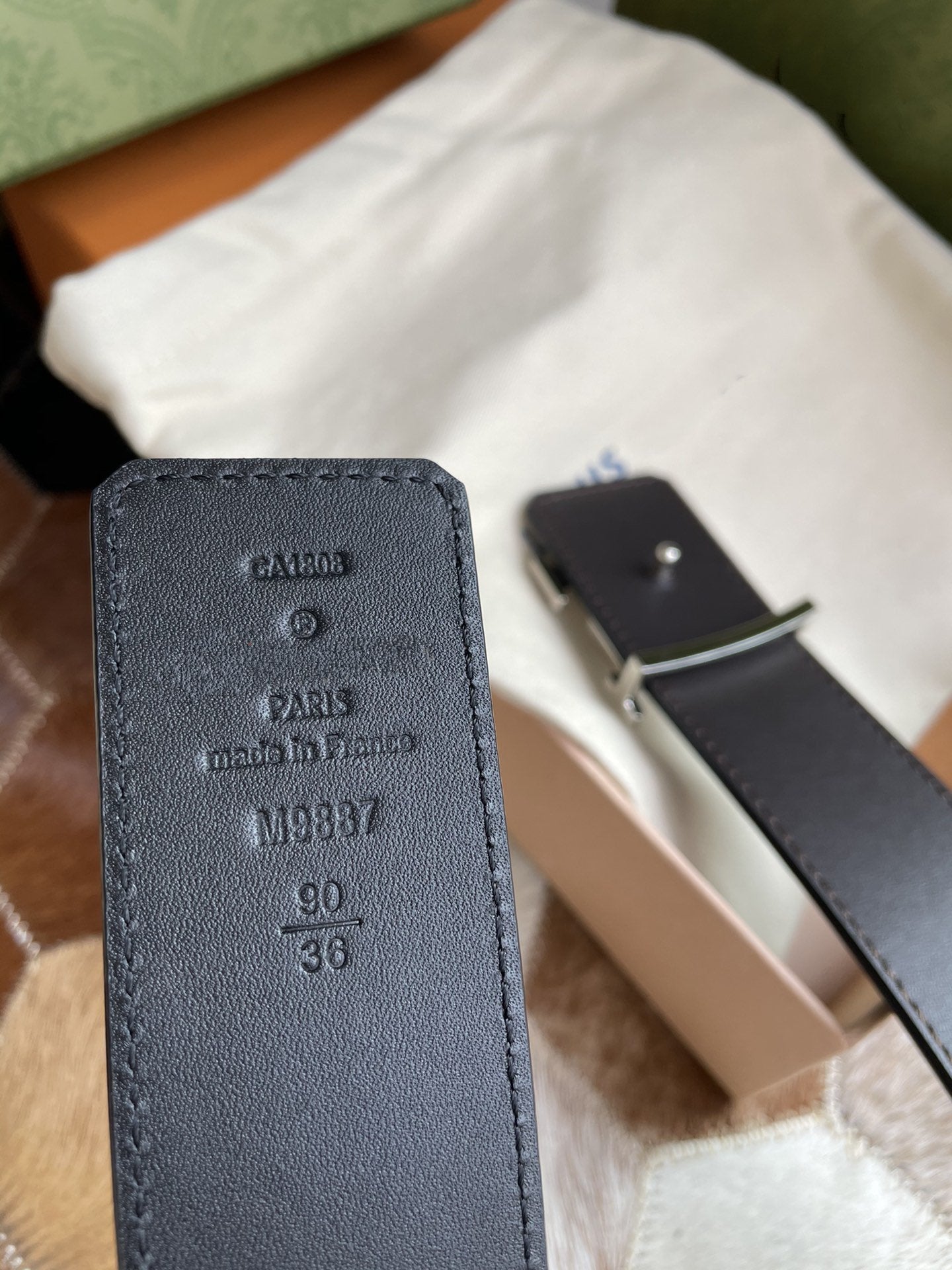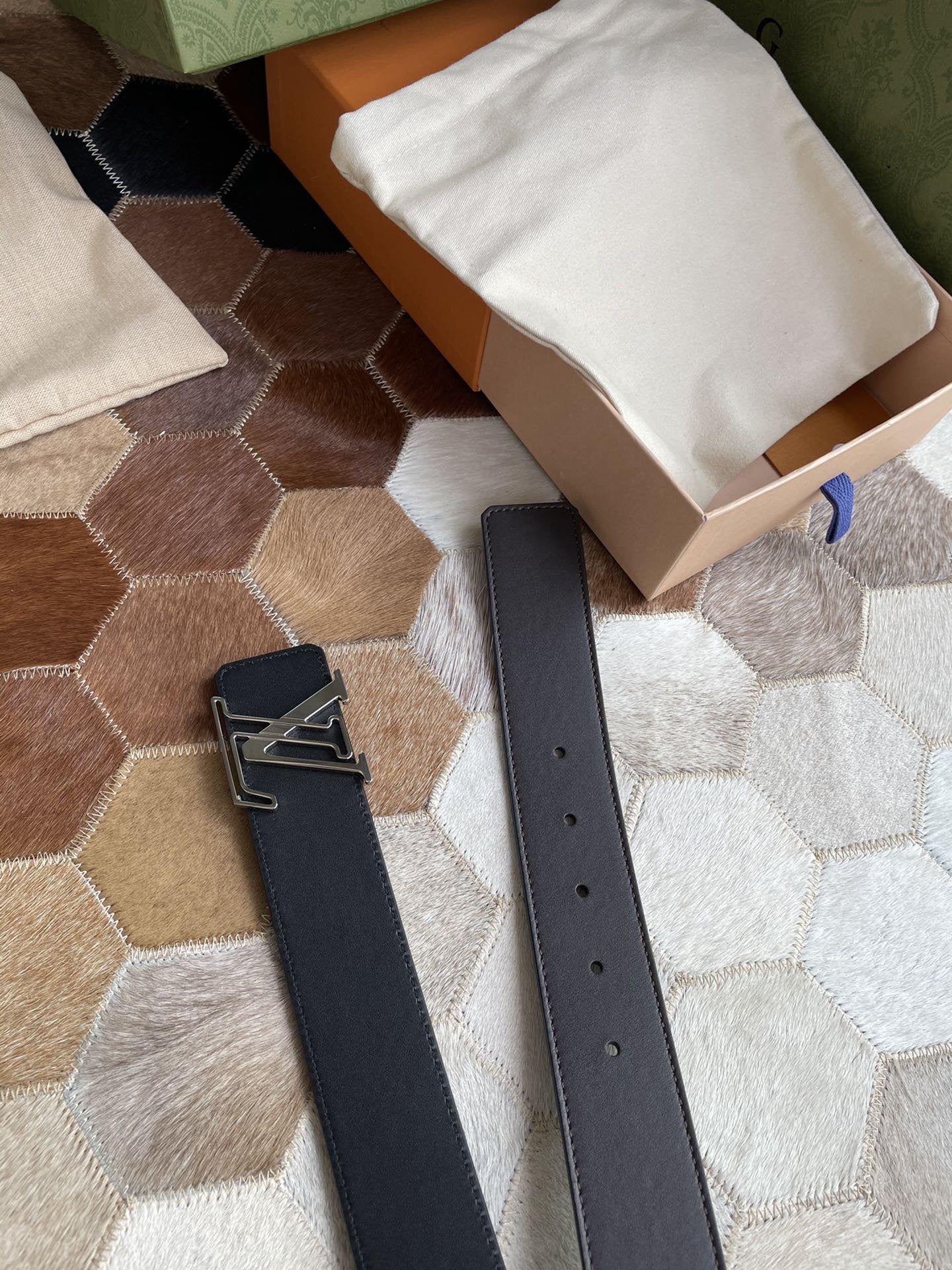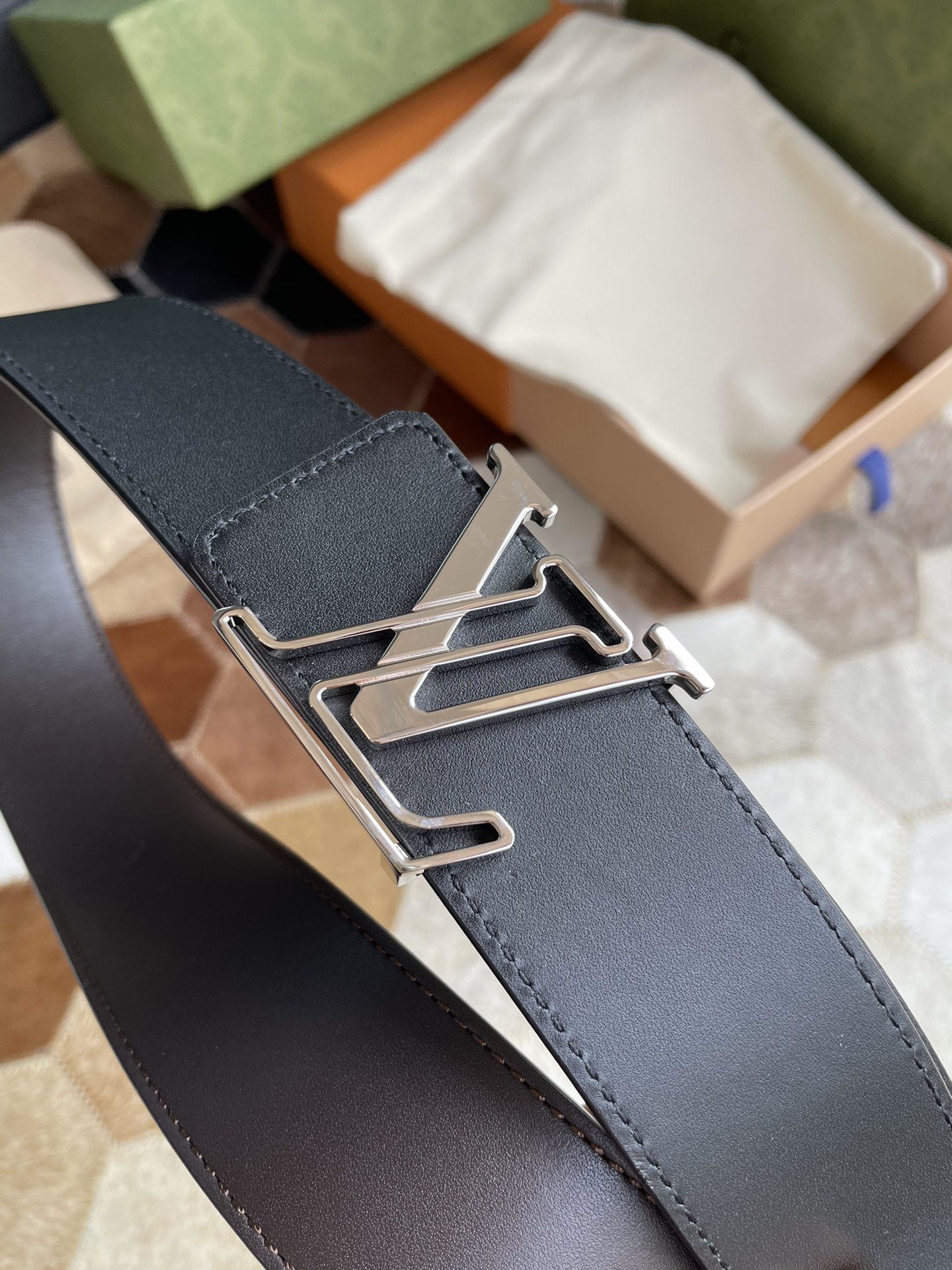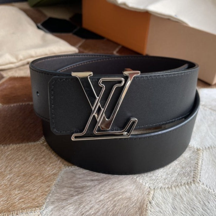 LV 40MM REVERSIBLE BELT SILVER BUCKLE BLACK CHOCOLATE LEATHER