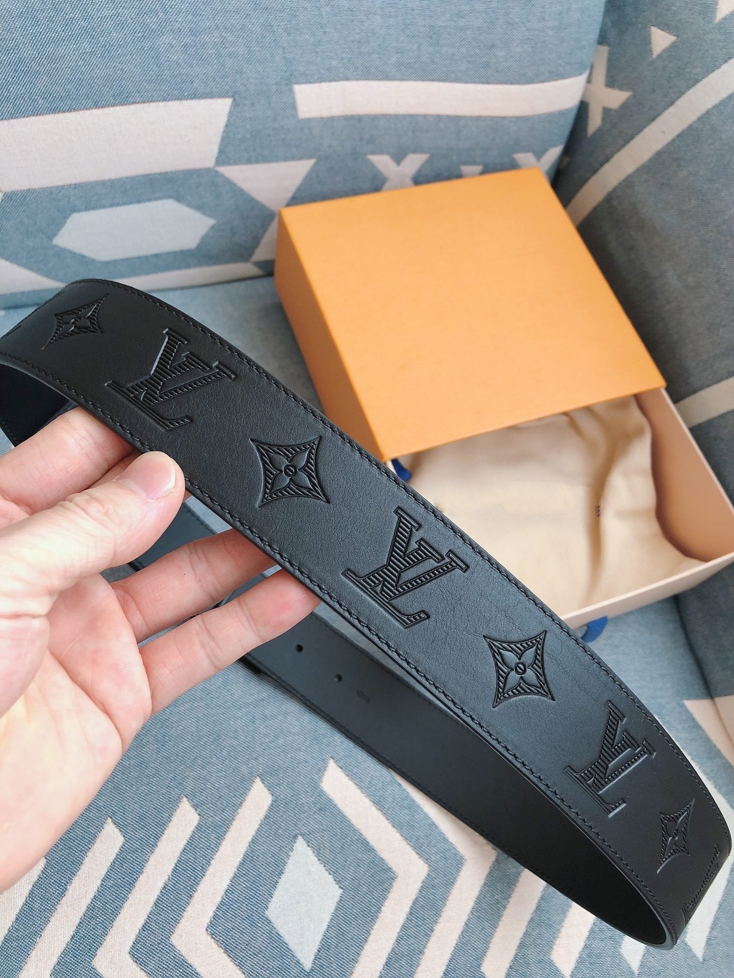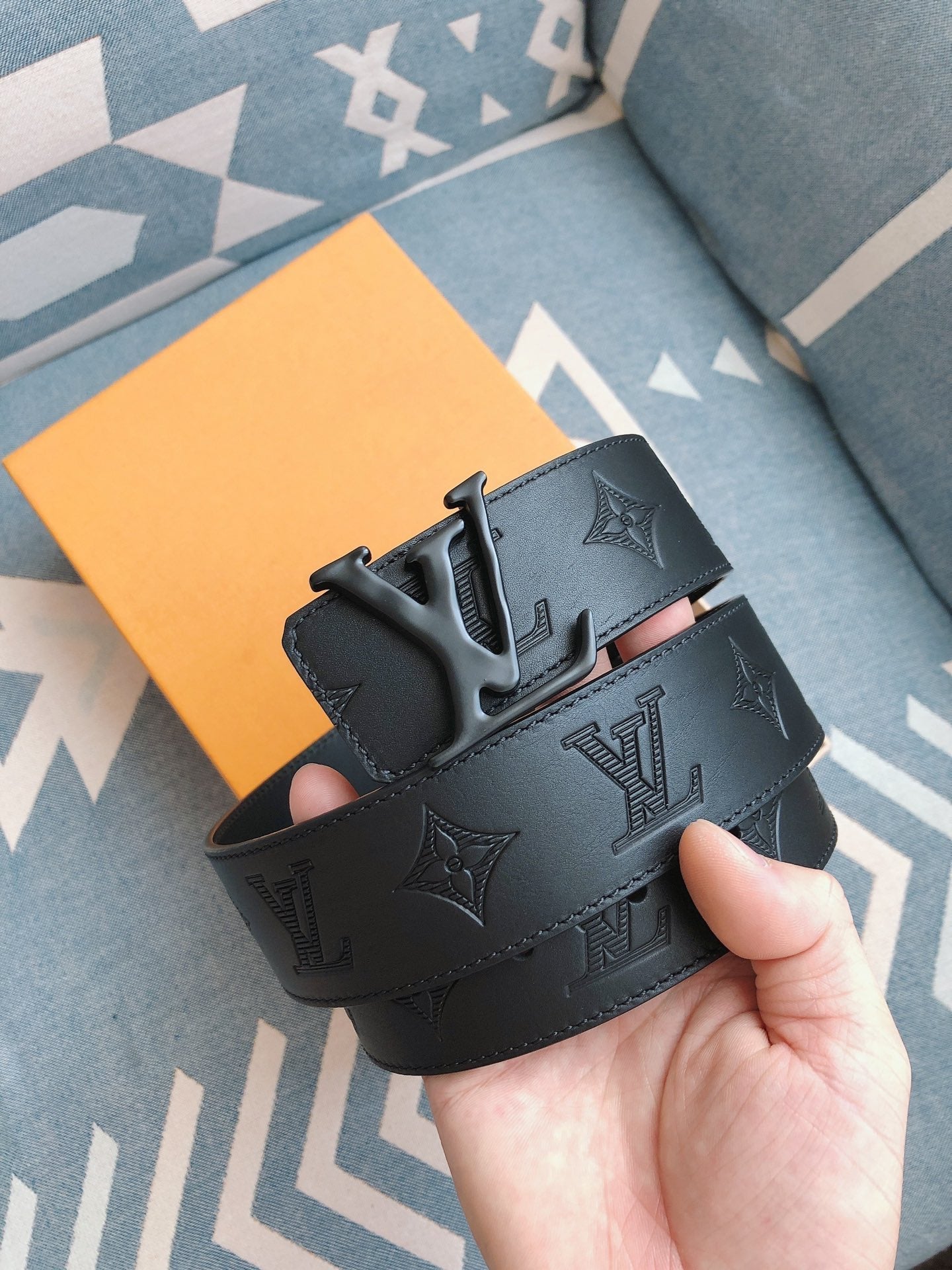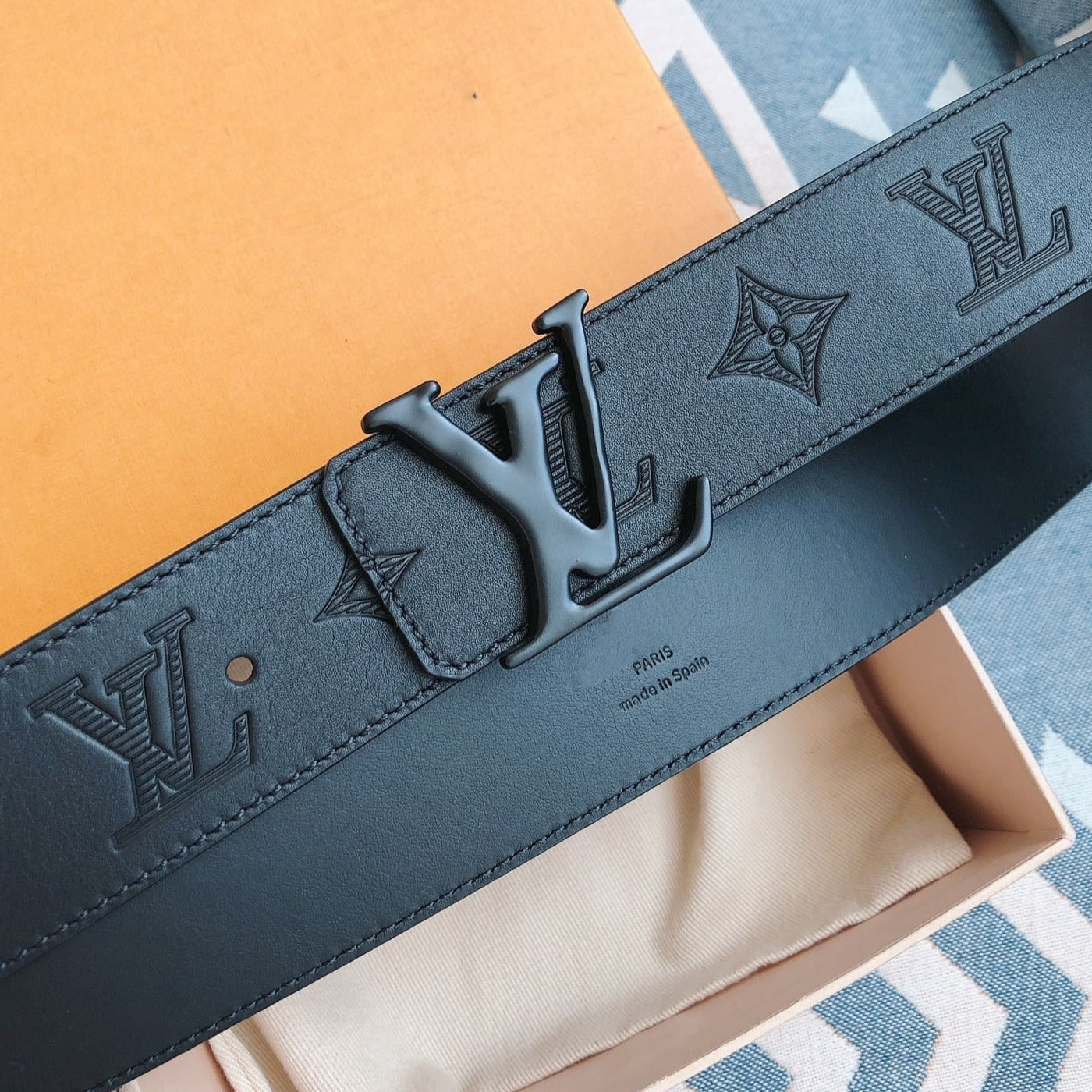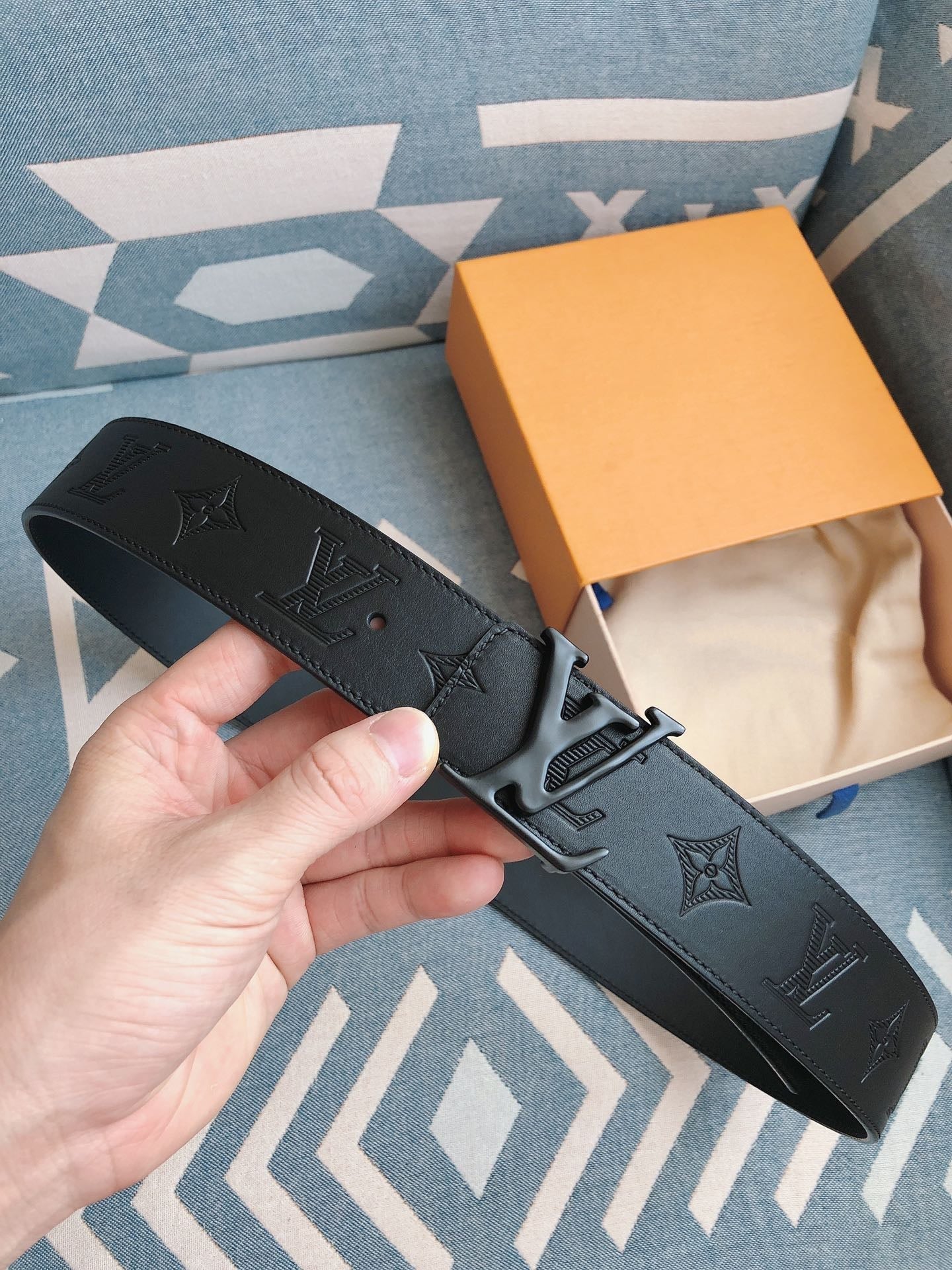 LV BELT 40MM EMBOSSED BLACK LEATHER FASHION