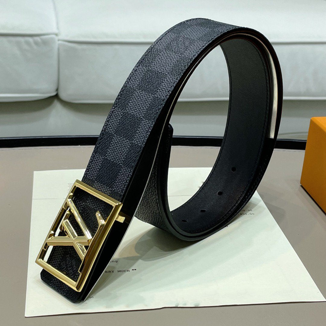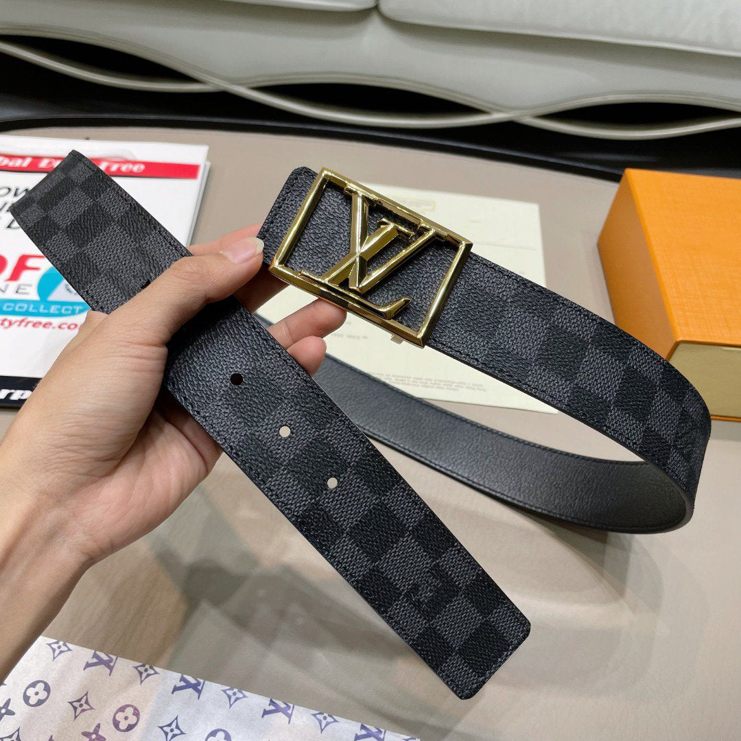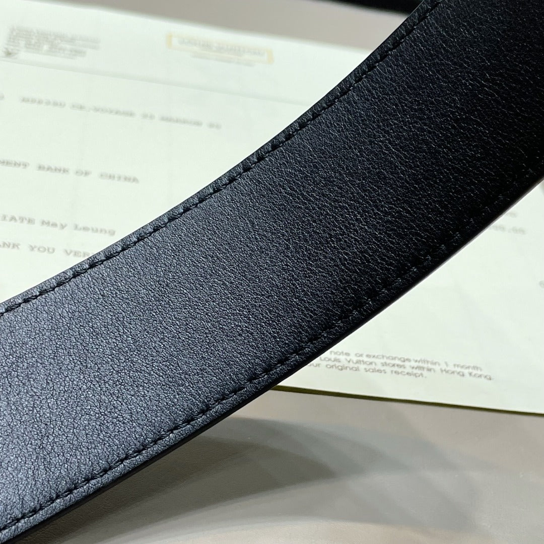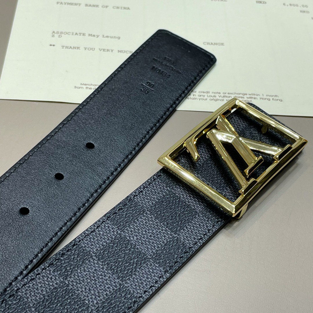 LV BELT GOLD BORDER BUCKLE BLACK GREY LEATHER 40MM