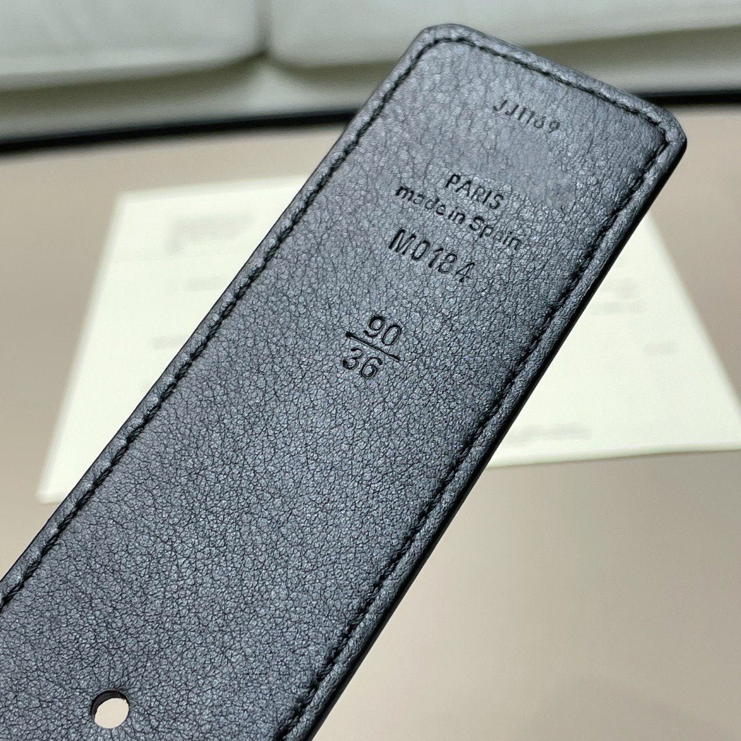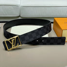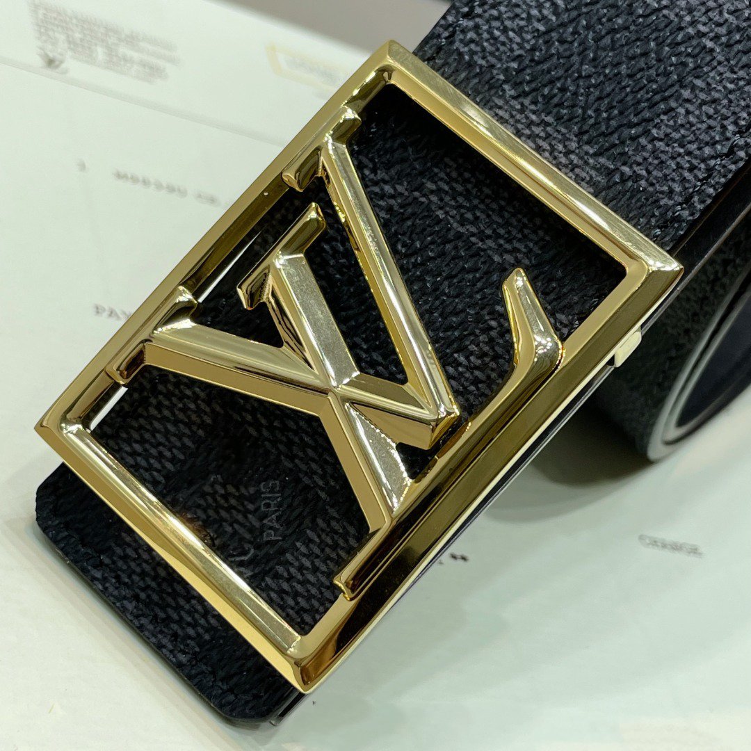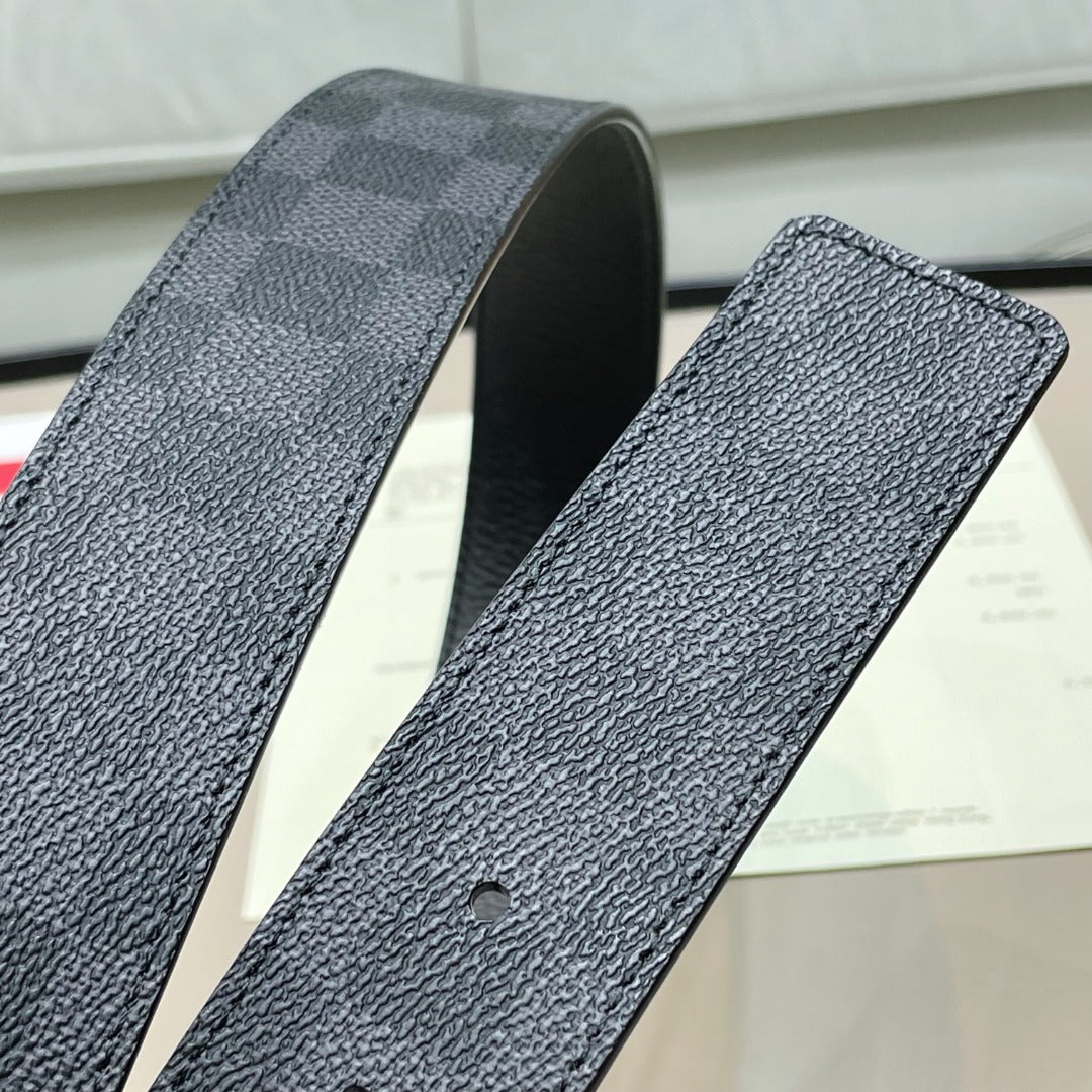 LV BELT GOLD BORDER BUCKLE BLACK GREY LEATHER 40MM