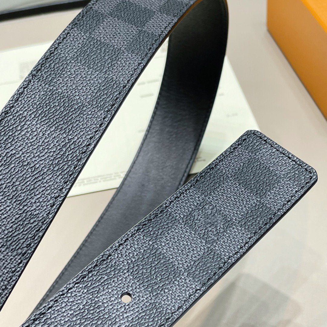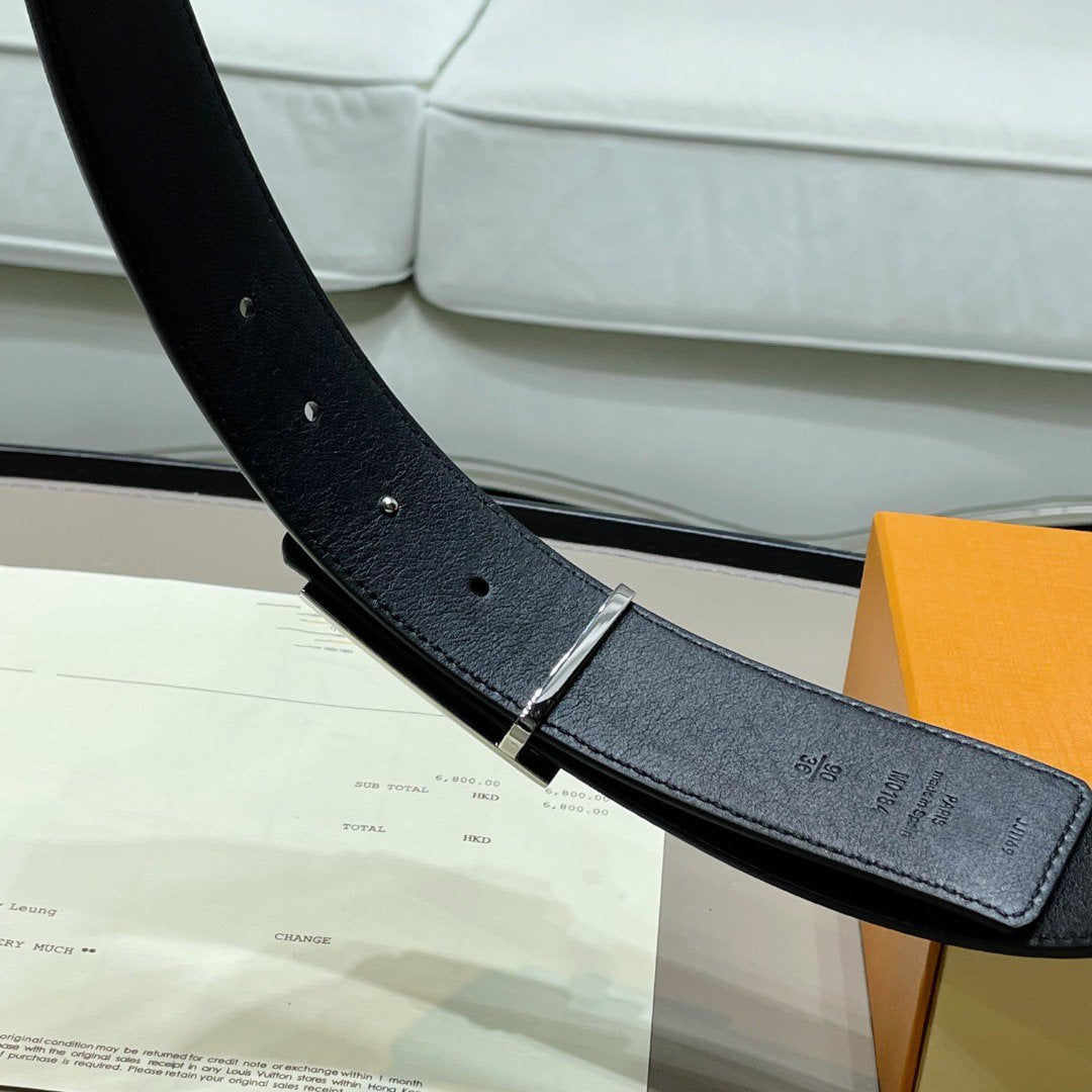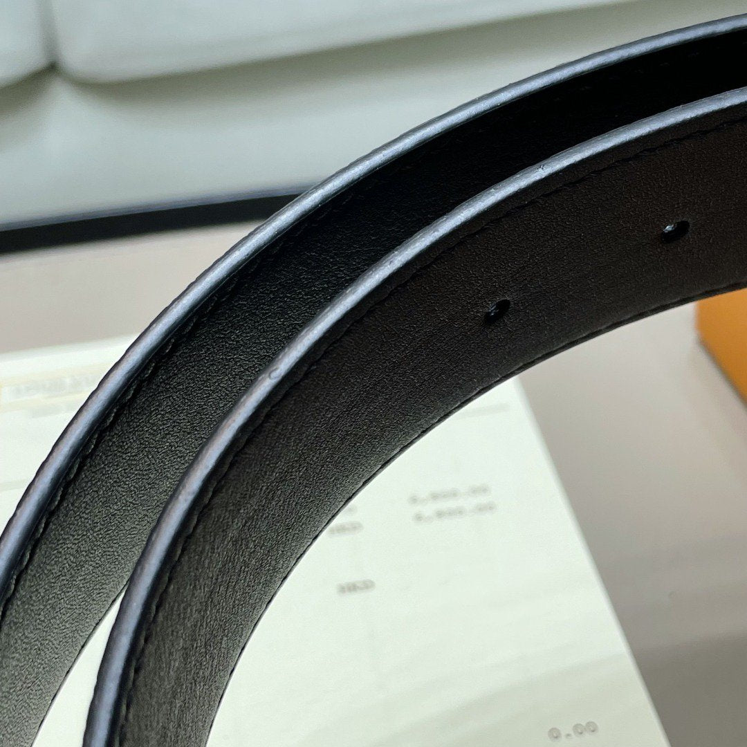 LV BELT SILVER BORDER BUCKLE BLACK GREY LEATHER 40MM