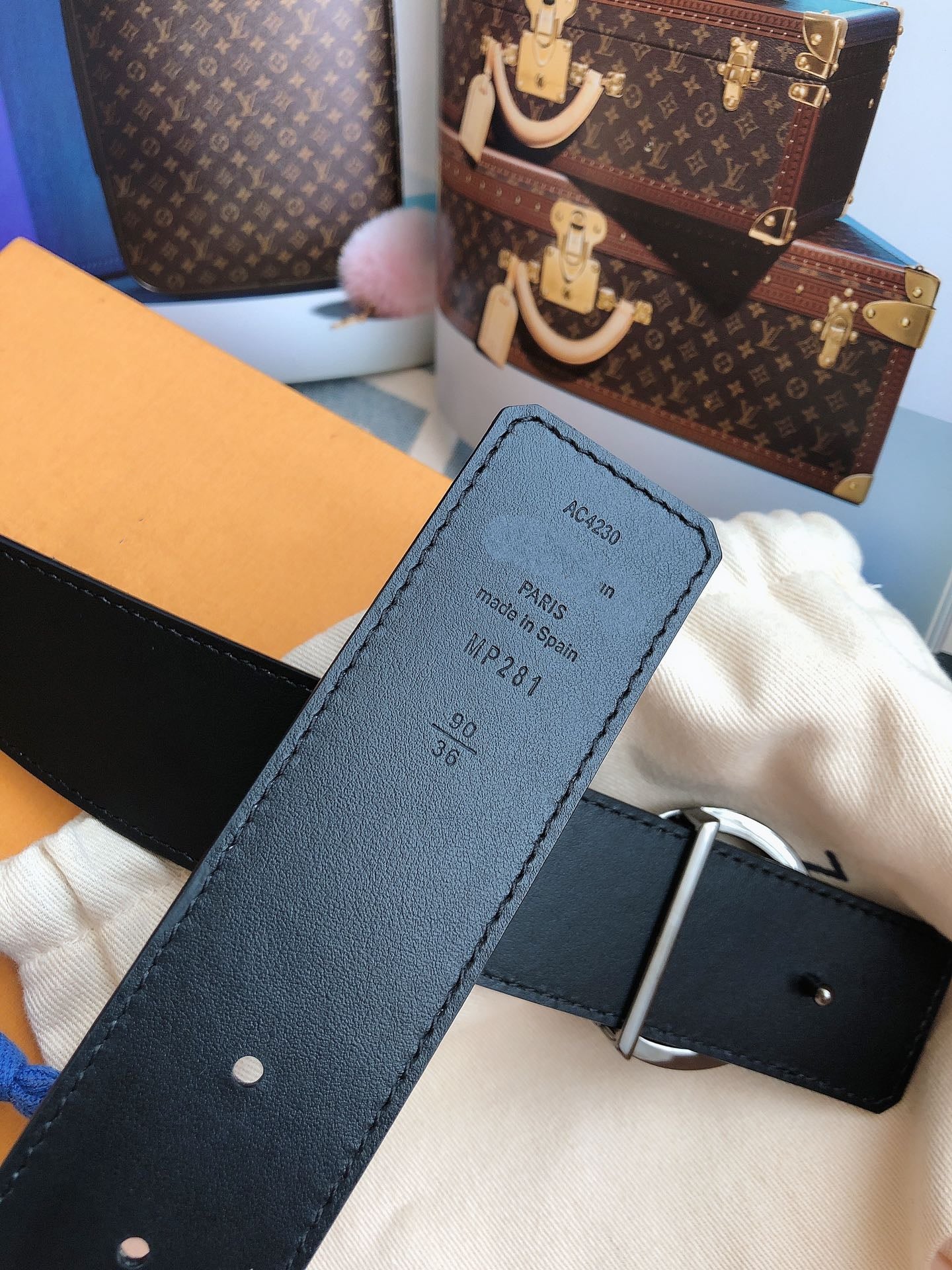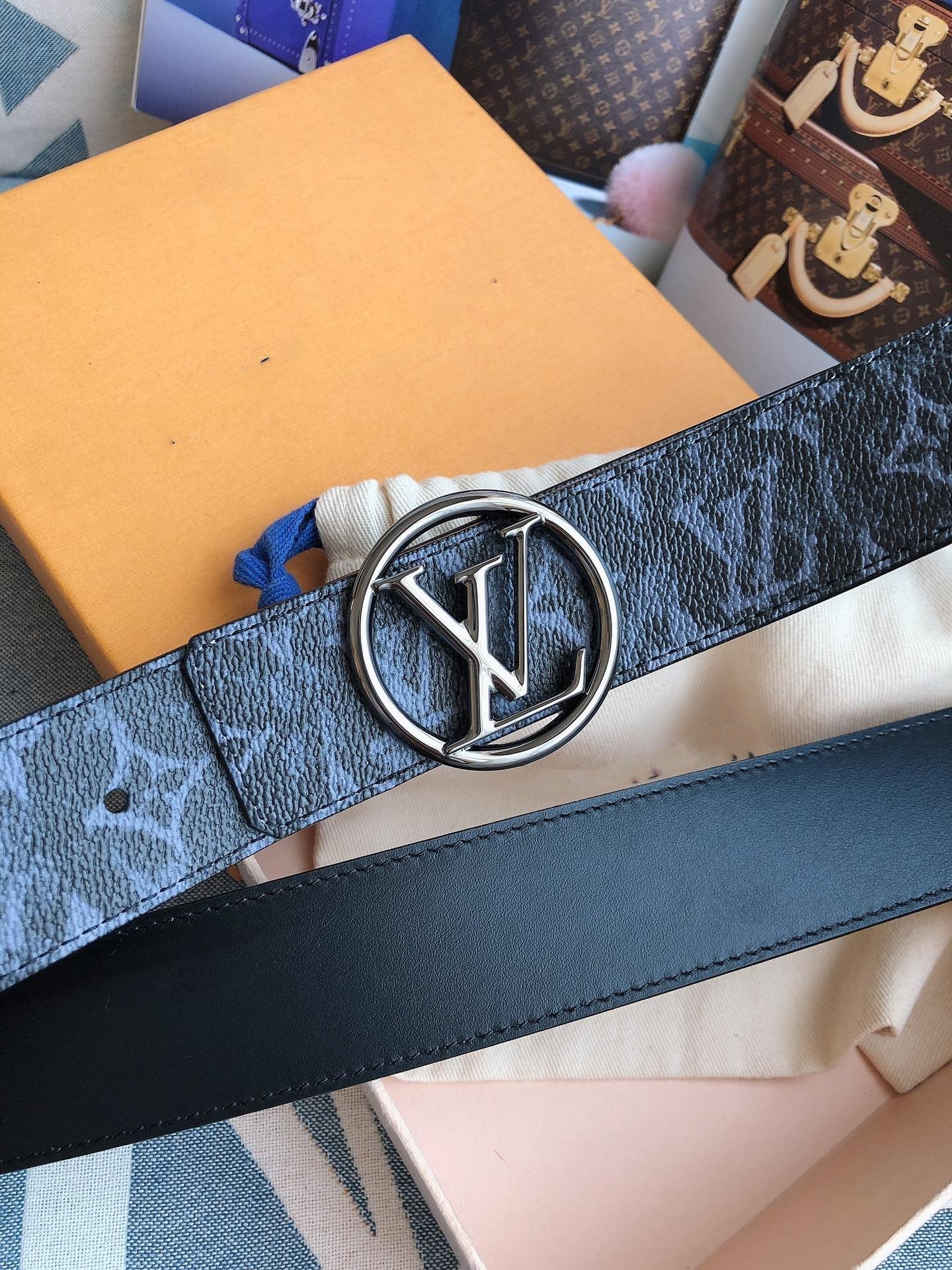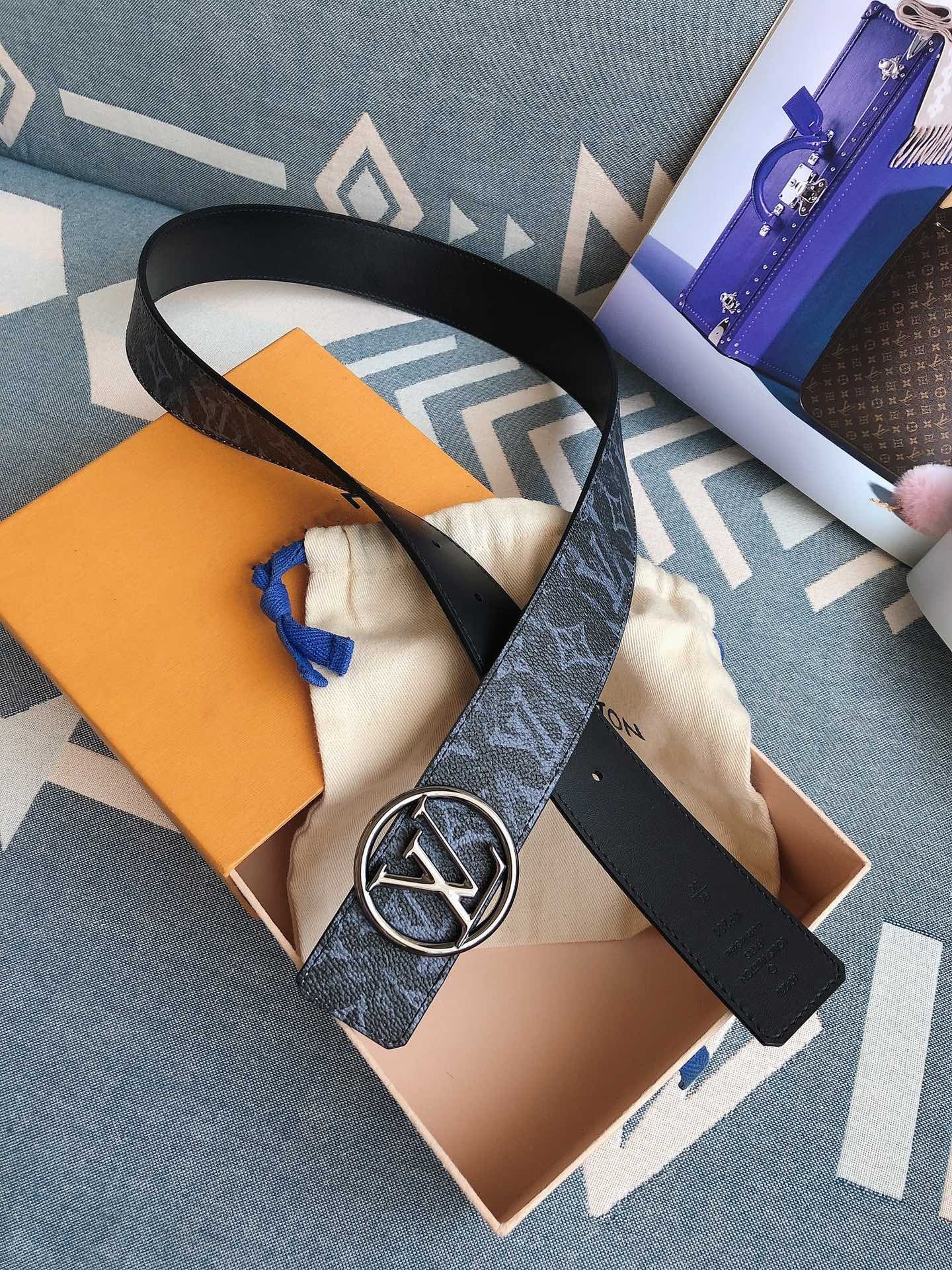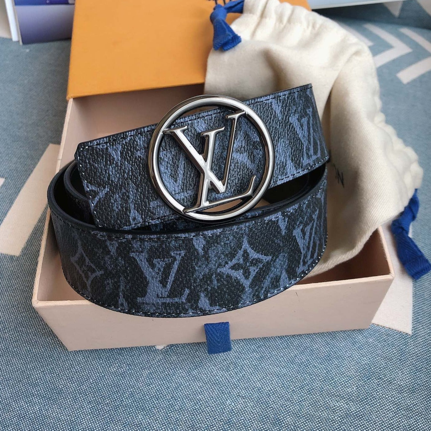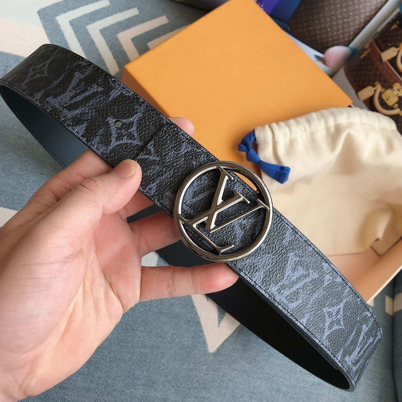 LV BELT SILVER ROUND FACE BUCKLE PRINT LEATHER 40MM