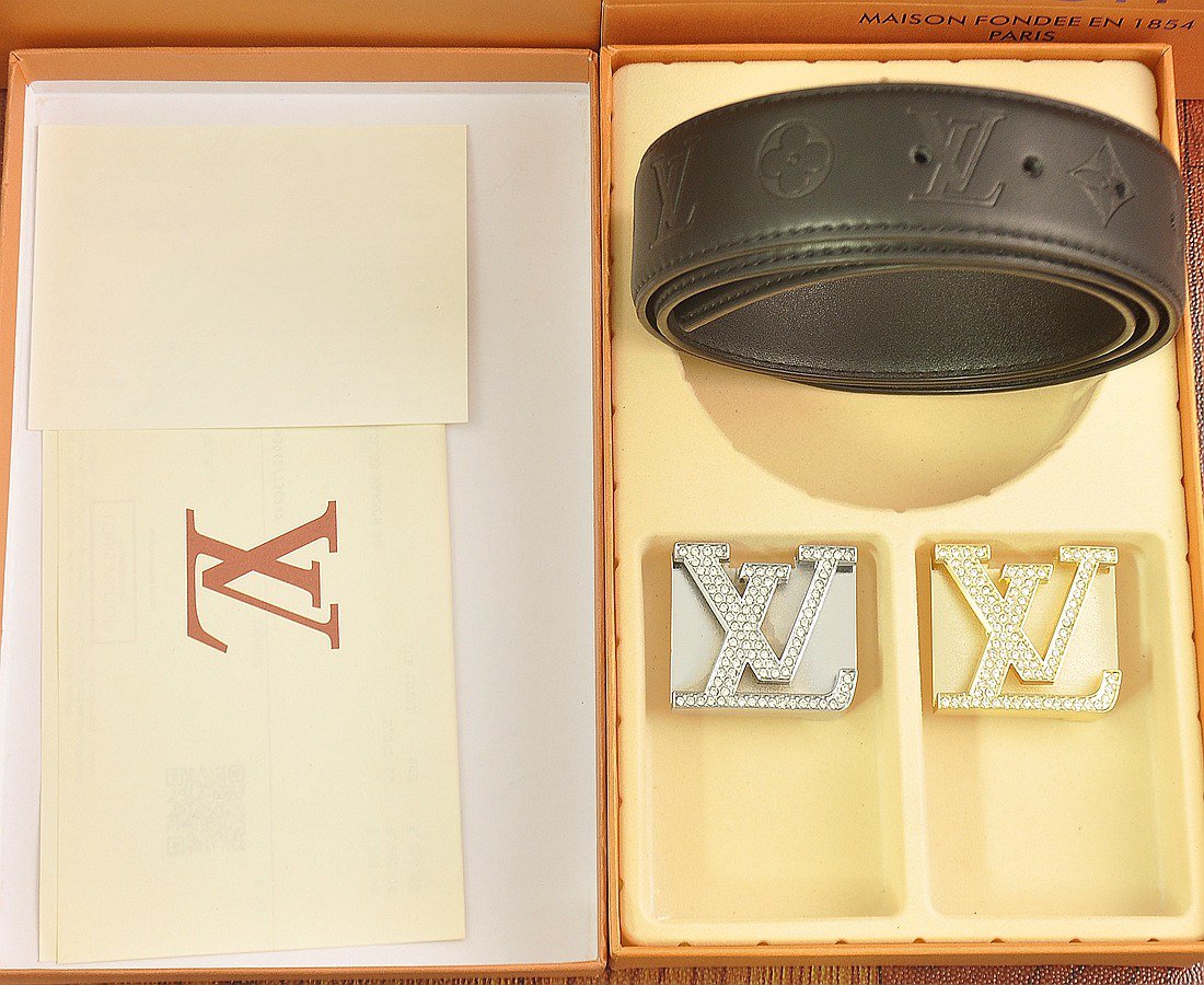 LV BELT SIMPLE DIAMOND BUCKLE BLACK LEATHER 38MM