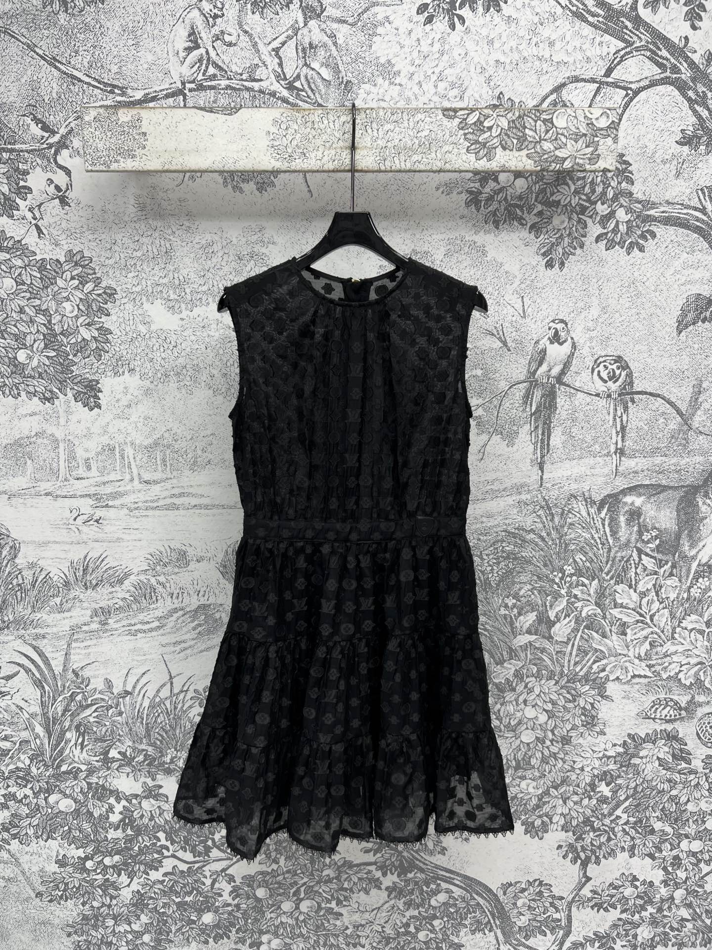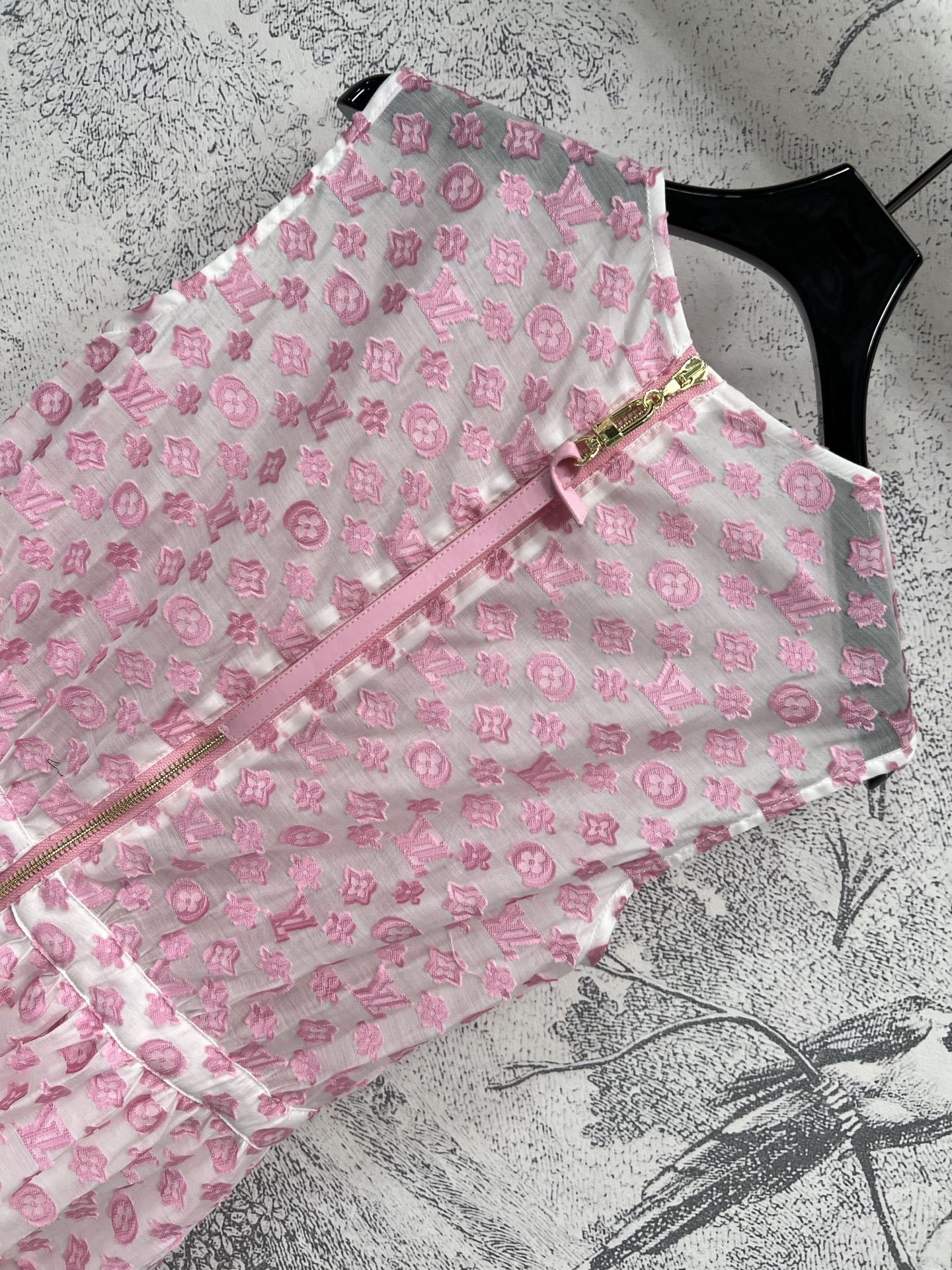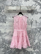 LV 25 Coin Letter Jacquard Pattern Decoration Dress Black Pink Poliester