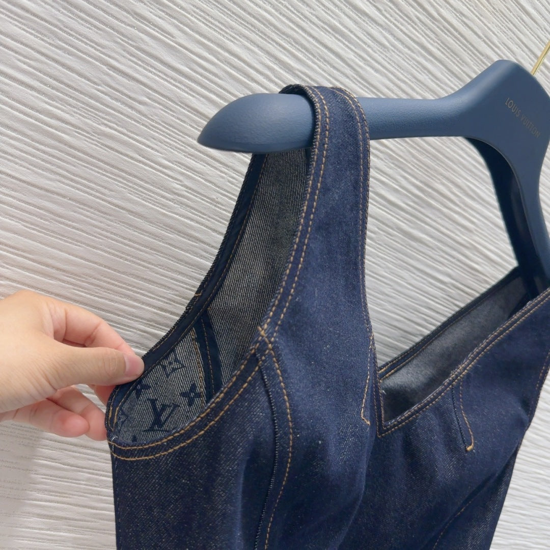 LV 25 Denim Back Zipper Shirt Blue Cotton