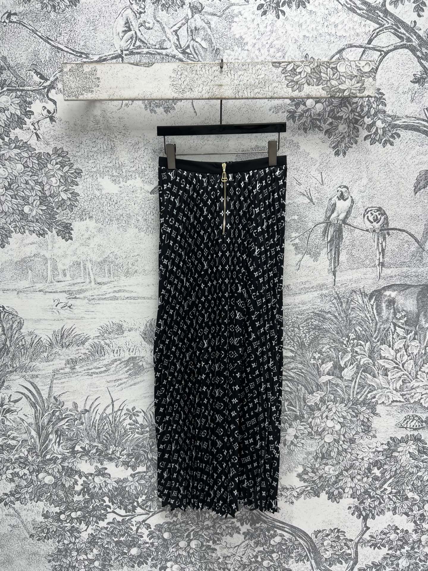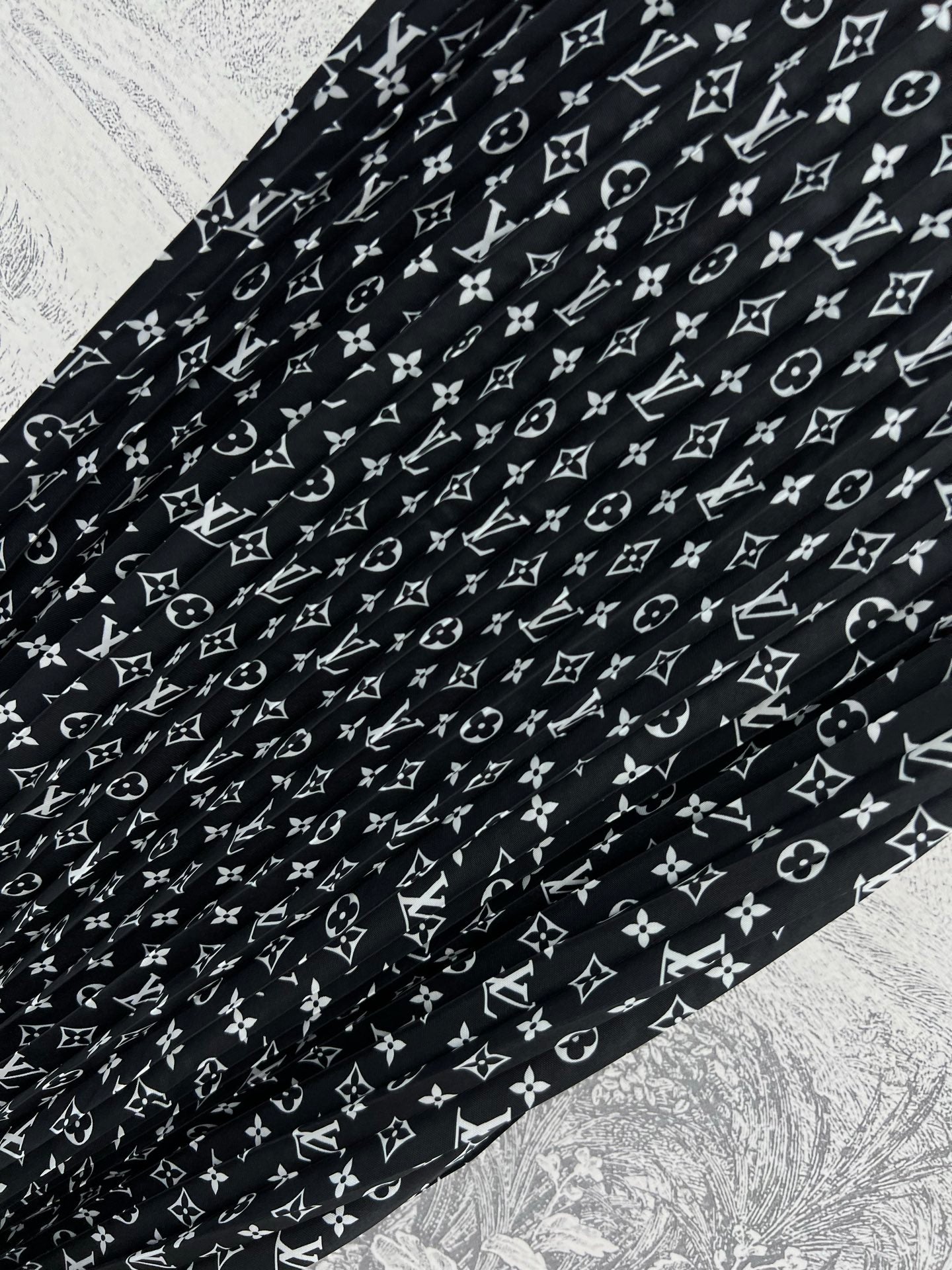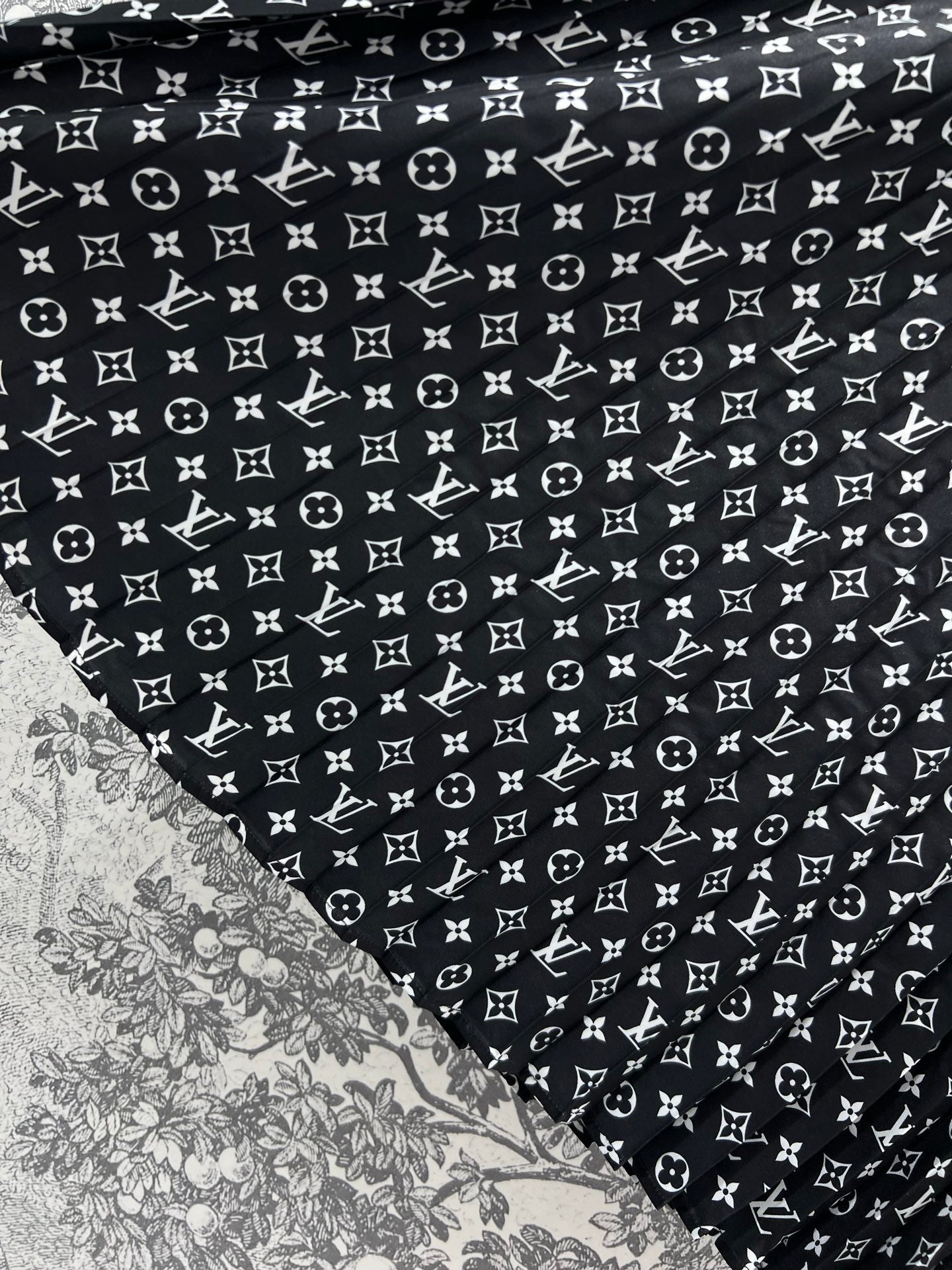 LV 25 Flower Barrage Print Lapel Dress Black Polyester