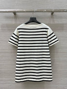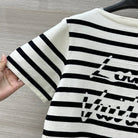 LV 25 Striped Letter Jacquard One-Shoulder Knitted White Black Cotton Polyester
