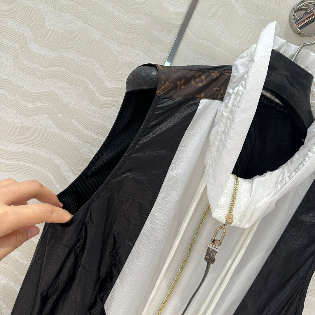 LV Classic Monogram patchwork Contrast Design Dress Black White Polyester