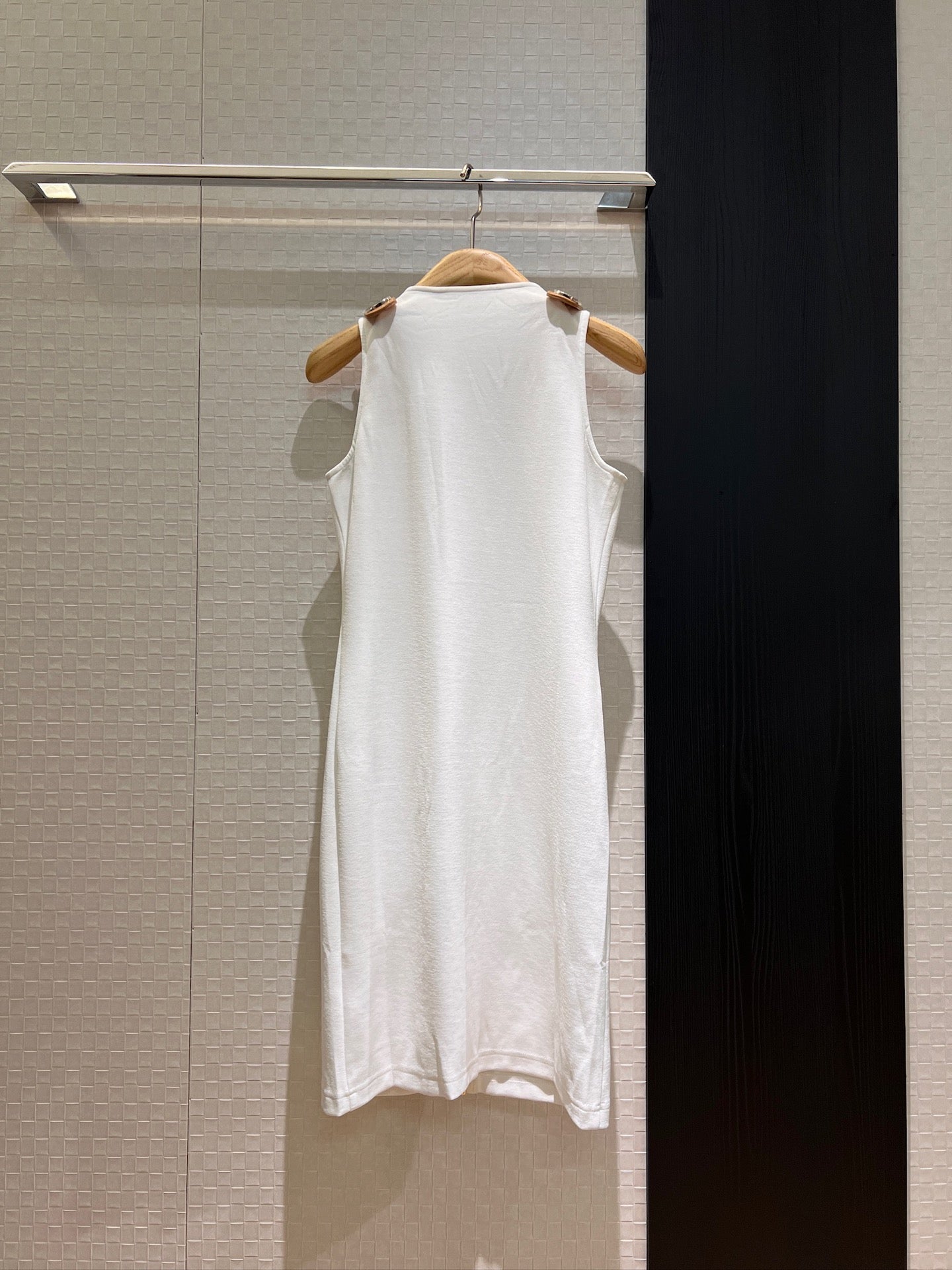 LV Double-Head Zipper Design Slits Dress White Cotton