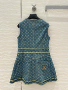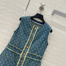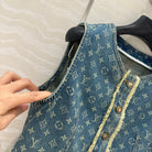 LV Hair Edge Craftsmanship Denim Dress Blue Cotton