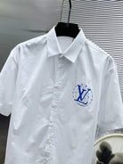 LV SHORT-SLEEVED SHIRT IN WHITE COTTON BLUE LOGO 238813