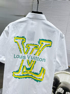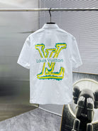 LV SHORT-SLEEVED SHIRT IN WHITE COTTON GREEN YELLOW LOGO 238815