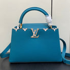 CAPUCINES MM 31 BLUE TAURILLON GOLD HARDWARE