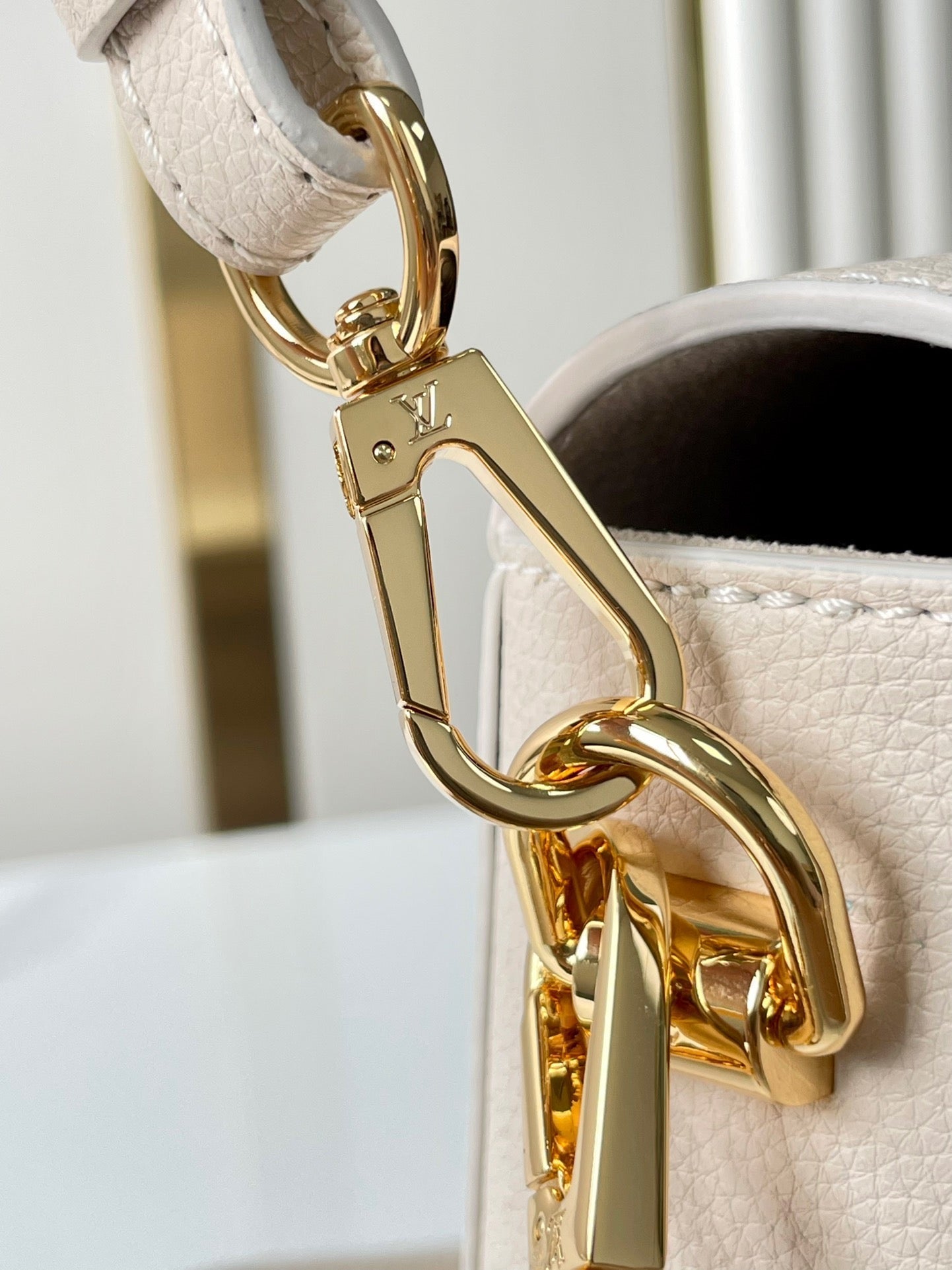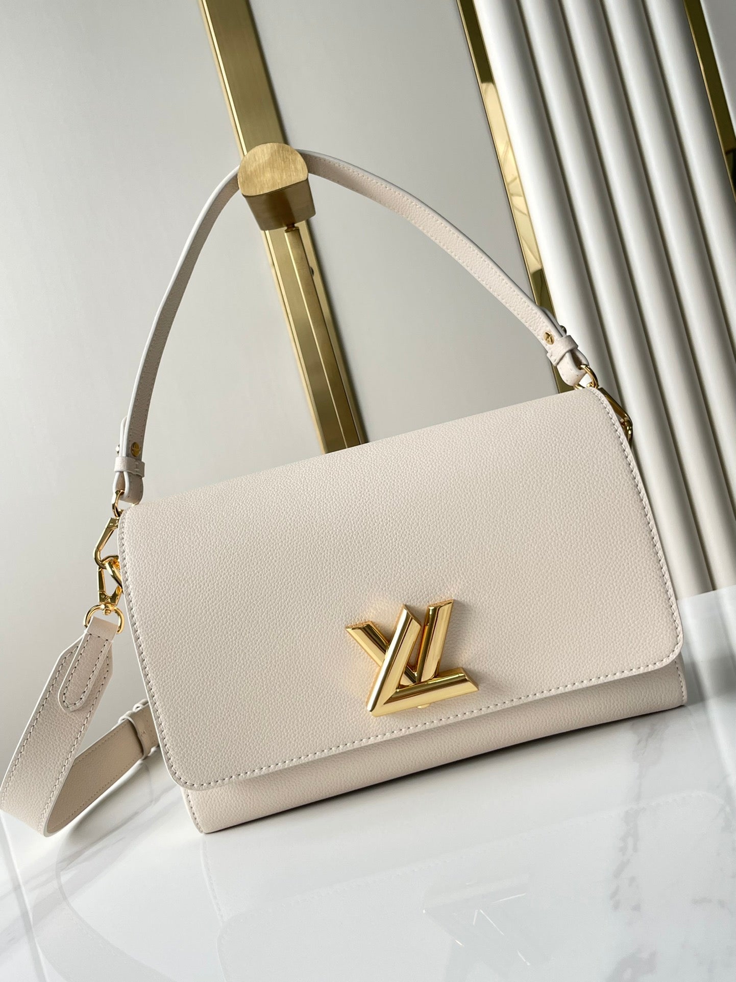 SOFT TWIST 27 IN WHITE CALFSKIN GOLD LOGO