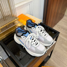RUN 55 series leisure sports shoes are made of composite mesh fabric, rubber, adhesive film, and other technological materials. They are paired with solid color cowhide and suede cowhide, exuding a sporty style. The added cushioned lining and thickened rubber outsole provide comfortable wear. Monogram canvas heel straps and other logos convey brand interest, combining fashion and practicality. It won't rub your feet and increases height by 5cm, forcefully giving you long legs! With good looks, height, and technical features, this modern sports shoe enhances the proportion of the thighs when worn and has high technology content. 😍 Perfect details 💯