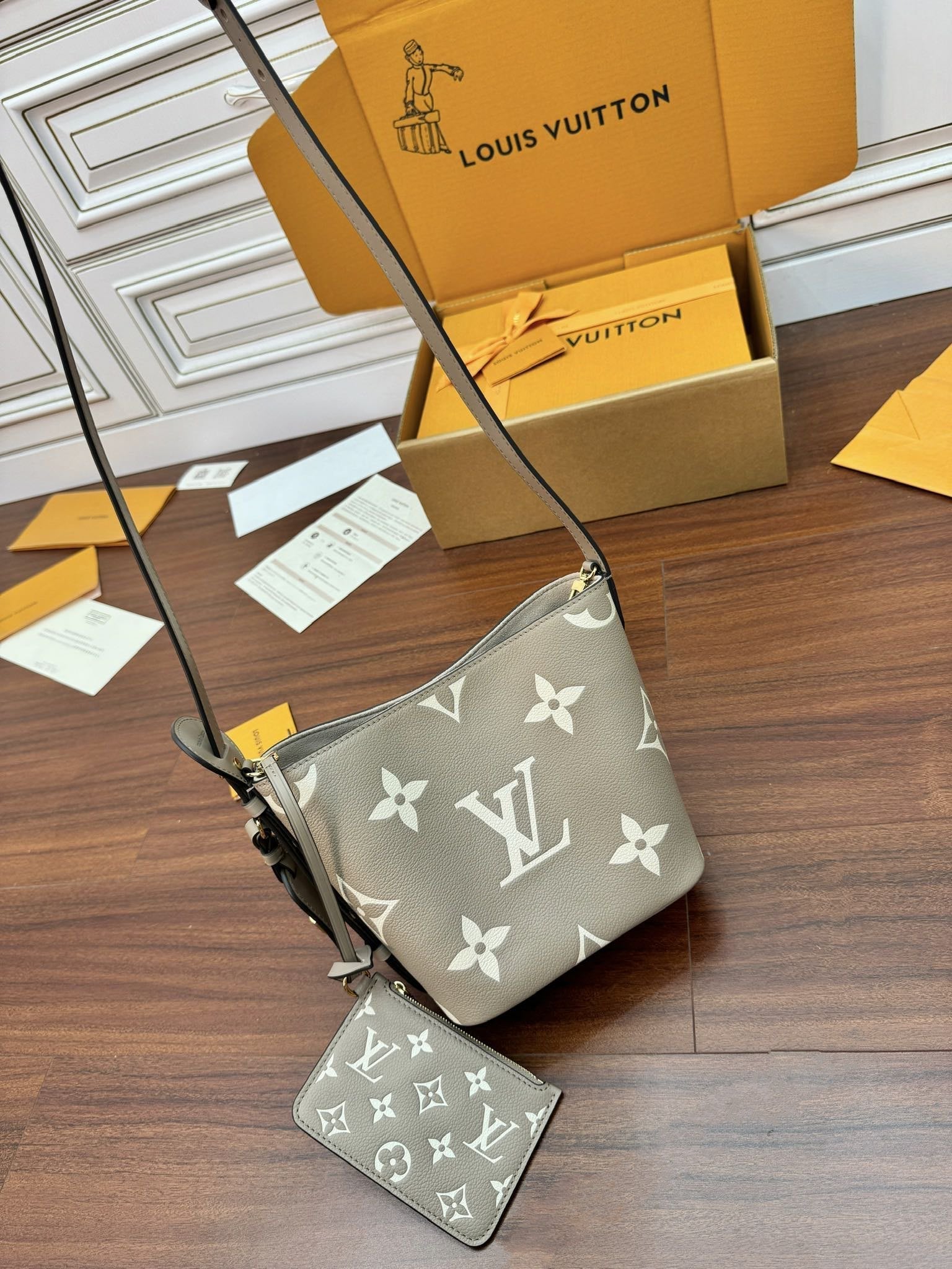 LV Bucket Bag 16cm Khaki Nude Monogram Canvas 330403