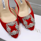 Manolo Buckle Mules 7cm Red Silk 208018