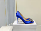 Manolo Diamond Buckle Pumps 10cm Navy Blue Silk 574252