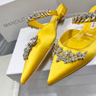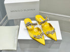 Manolo Flats Mules Crystal Yellow Silk Satin 327472