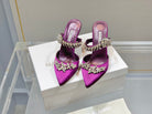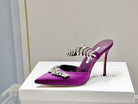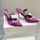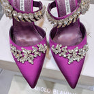 Manolo Mules Crystal Purple Silk Satin 219385