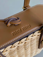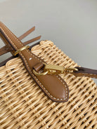 BASKET 20 BAG IN BROWN BEIGE WICKER AND LEATHER
