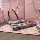 CROCHET TOTE BAG 38 IN MULTICOLORED WOVEN RAFFIA
