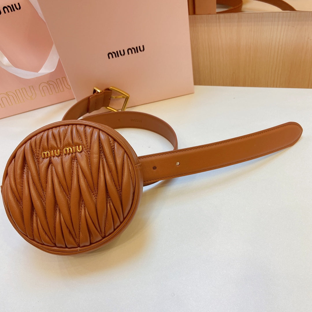 miu brown belt 30mm with circle matelasse bag