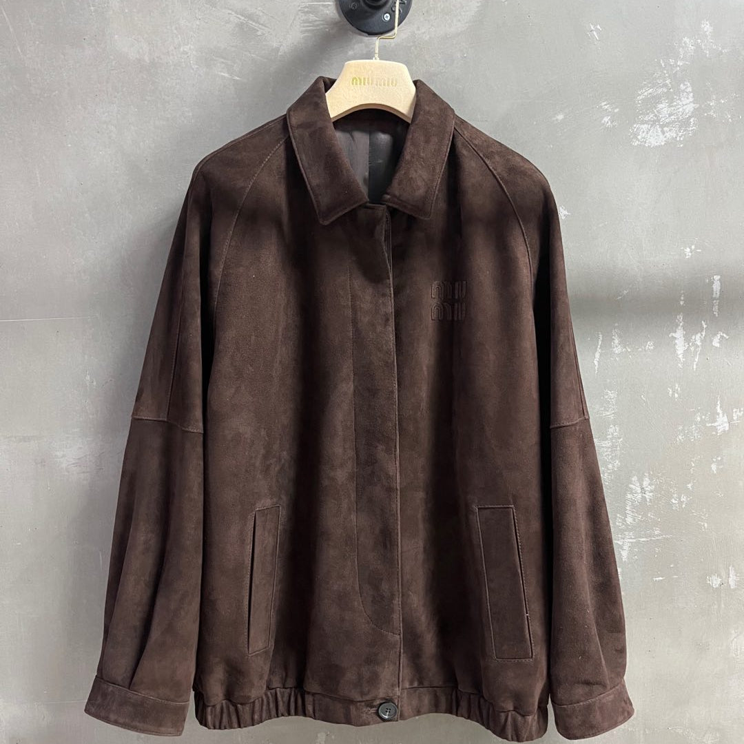 Miu Miu 2025 Jacket Brown Sheepskin Suede