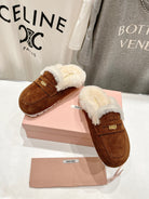 Miu Mule Wool Lining Caramel Brown Suede