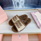 Miu Slipper Beige And Brown Woven Raffia