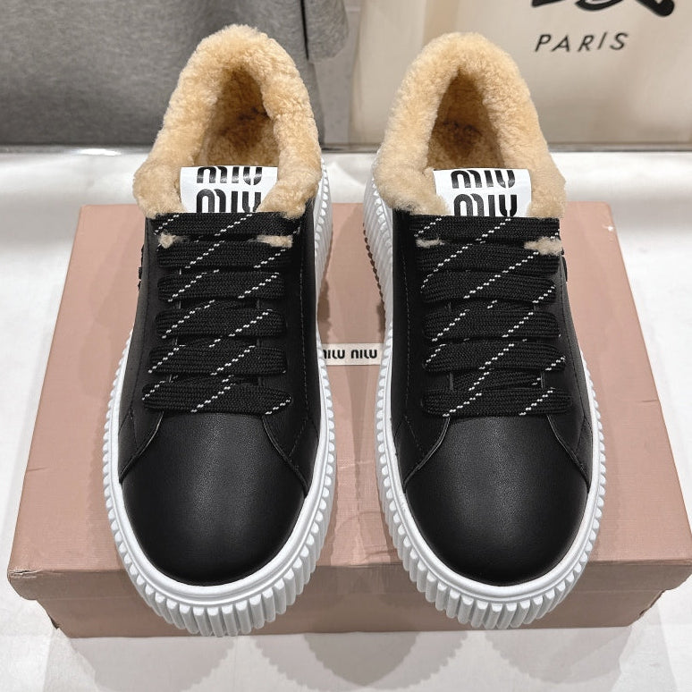 MiuMiu 25 Sneaker Black Beige Cowhide Fur 535590