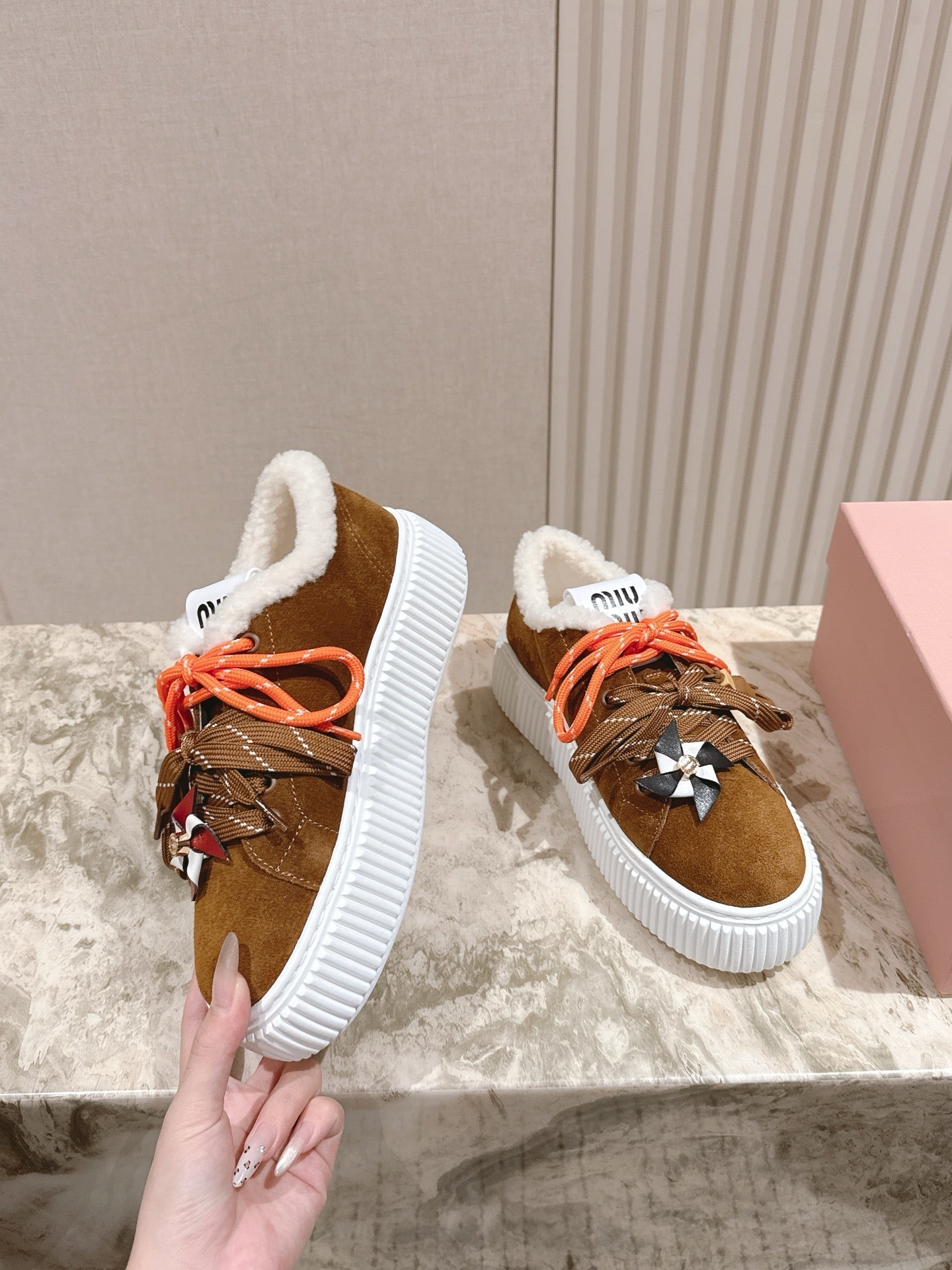 MIU MIU platform sneakers brown suede wool 461864