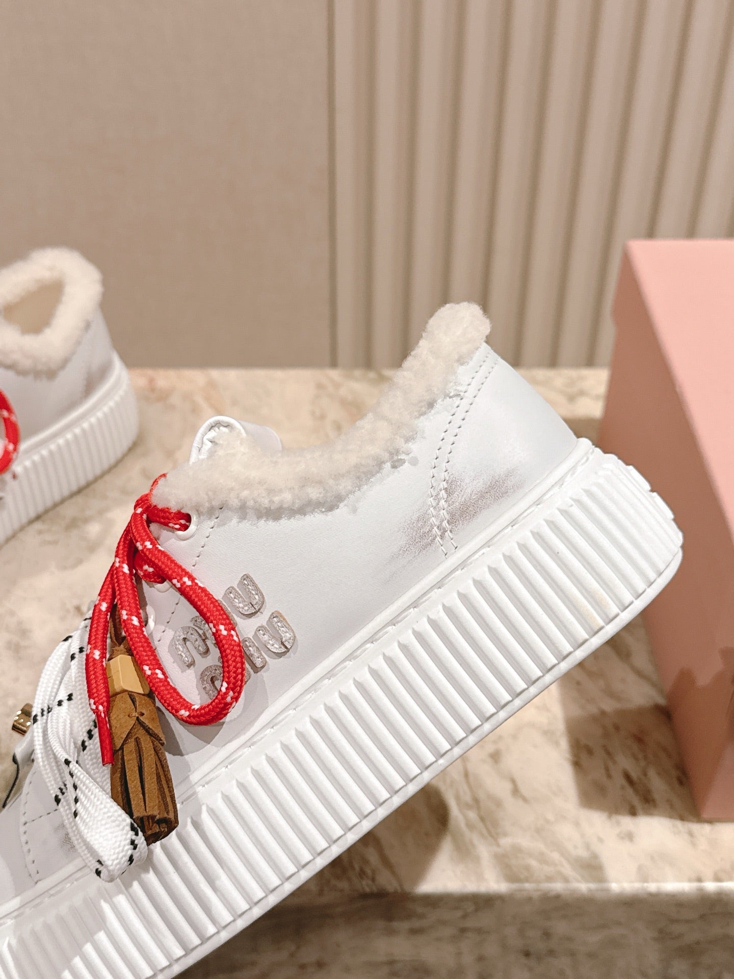 MIU MIU platform sneakers white leather wool 461859