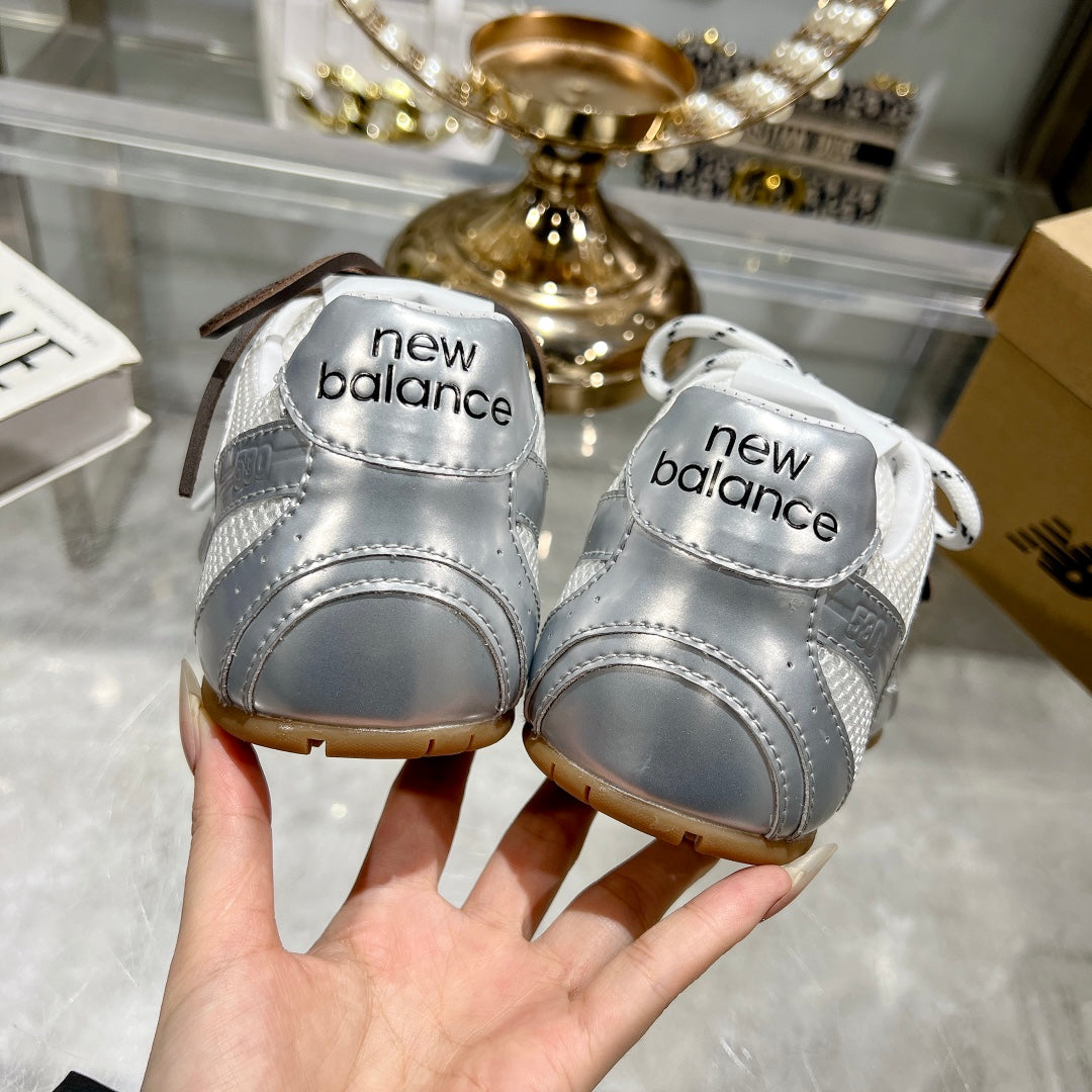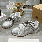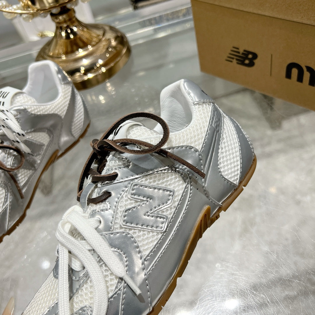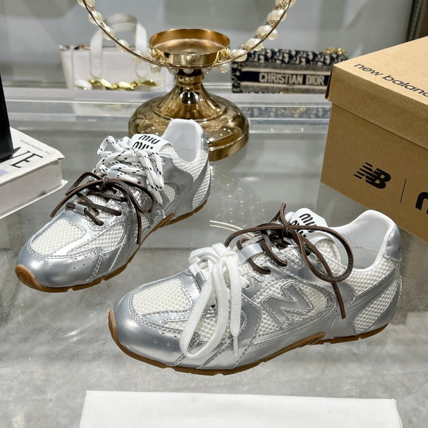 Miu Miu Pre-Owned x New Balance 550 Sneakers Silver White Cowhide Mesh 155323