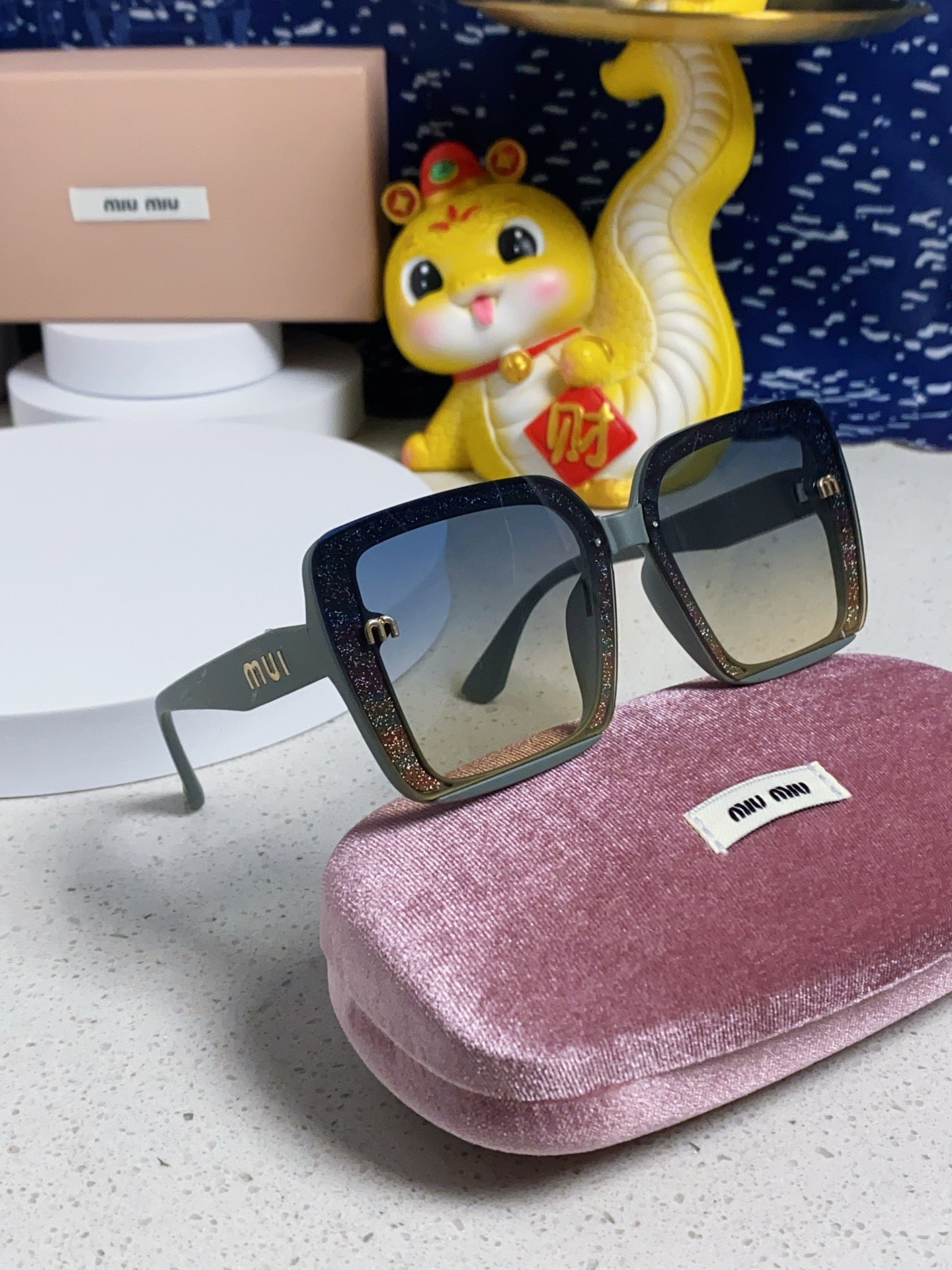 RUNWAY SQUARE SUNGLASSES 563197 IN TAN BLUE ACETATE