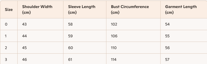 - Size : 0,1,2,3