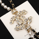 CHANE PEARLS AND LEATHER STRAPS GOLD NECKLACE TYPE 1