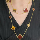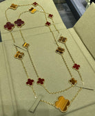 CLOVER 16 MOTIF CARNELIAN TIGER EYE PINK GOLD NECKLACE