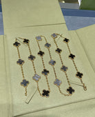 CLOVER 20 MOTIF GREY MOP PINK GOLD NECKLACE