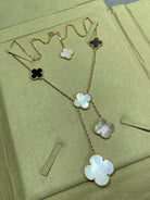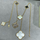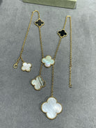 CLOVER 6 MOTIF MOP ONYX GOLD NECKLACE