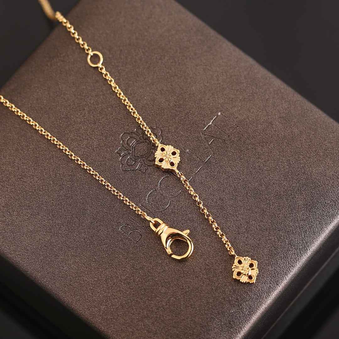 CLOVER 16 MOTIF CARNELIAN TIGER EYE PINK GOLD NECKLACE
