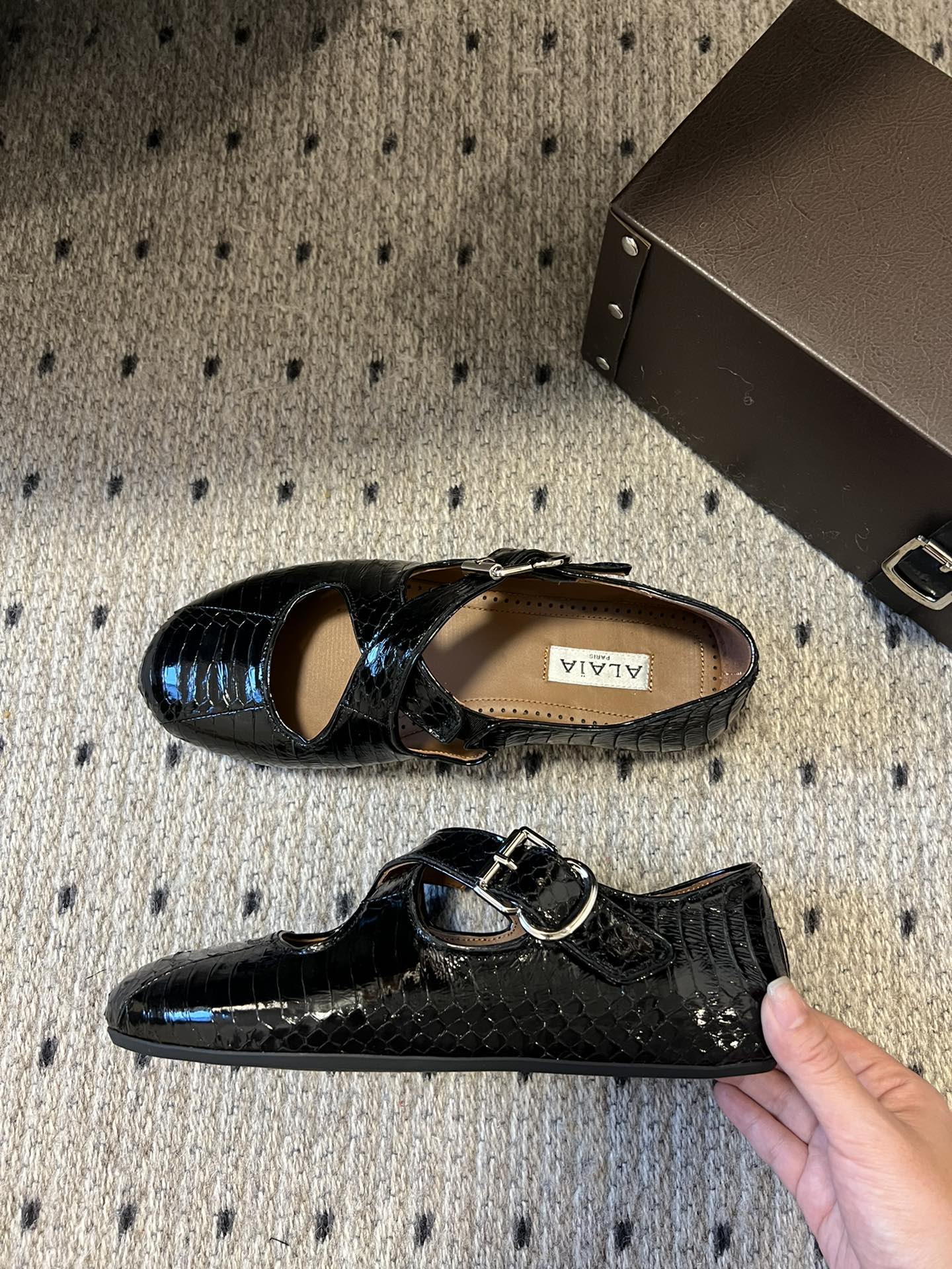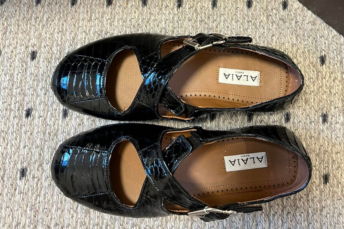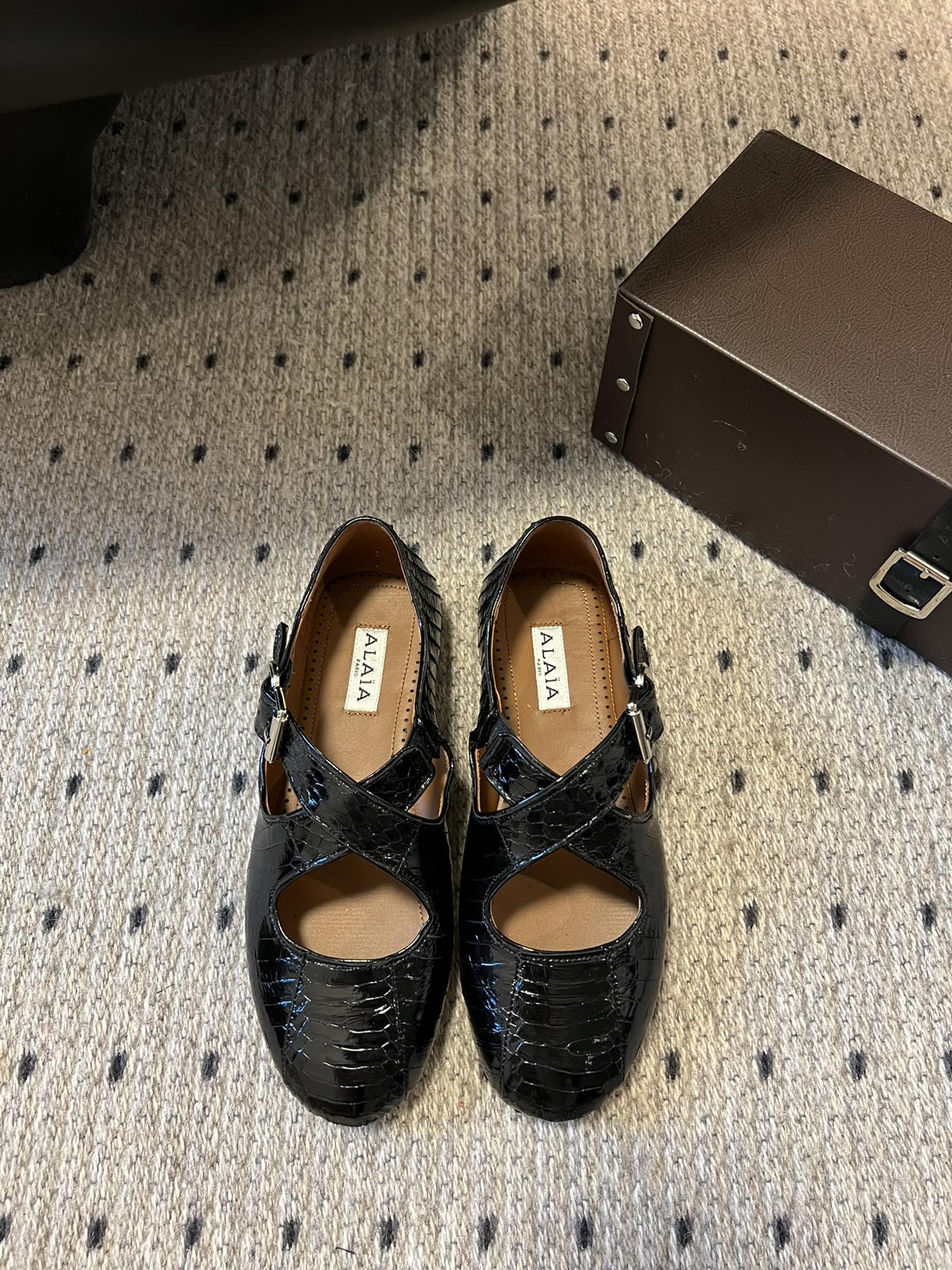 Alaia 25 Criss Cross With Stud Ballet Flats Black Sheepskin 303697