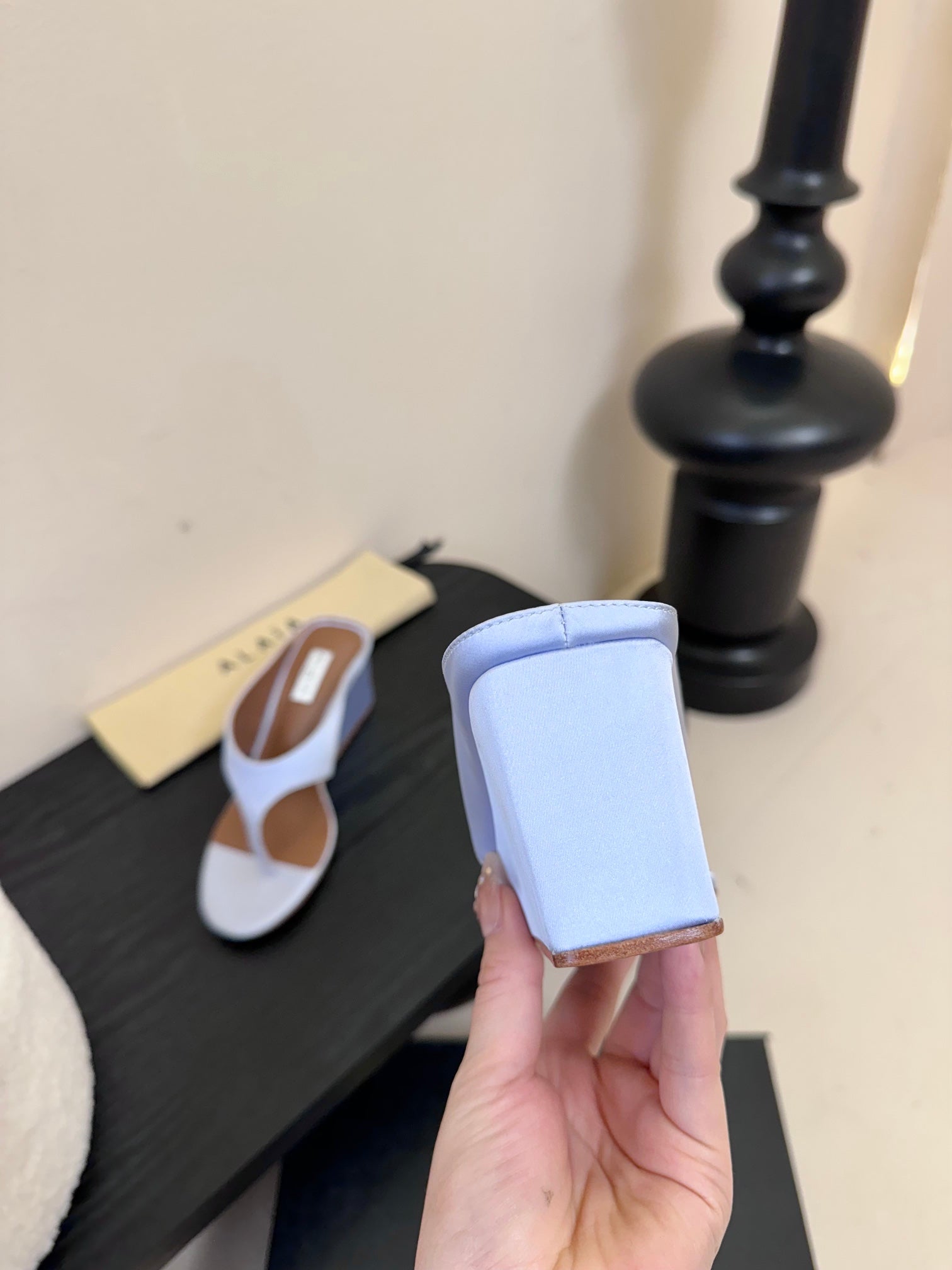 Alaia 25 Cube Thong Mules Blue Satin Sheepskin 297038