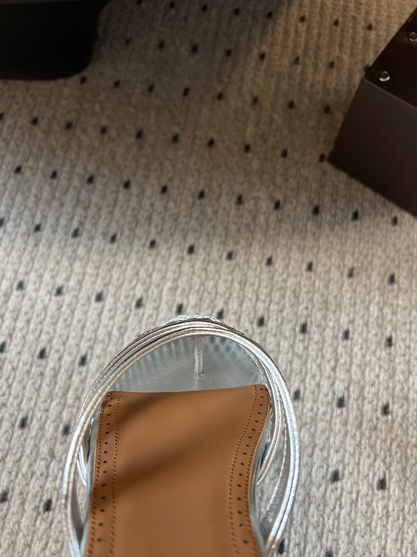 Alaia 25 Infradito Fishnet Flat Mules Silver Lampskin 303712