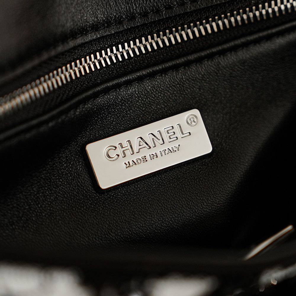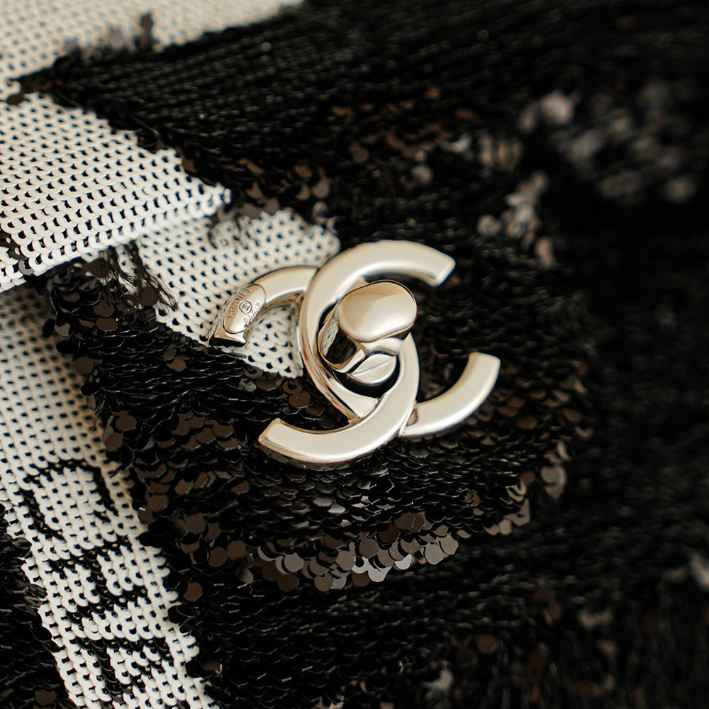 CC 2025 Bow Flap Bag Black White Sequin 308597