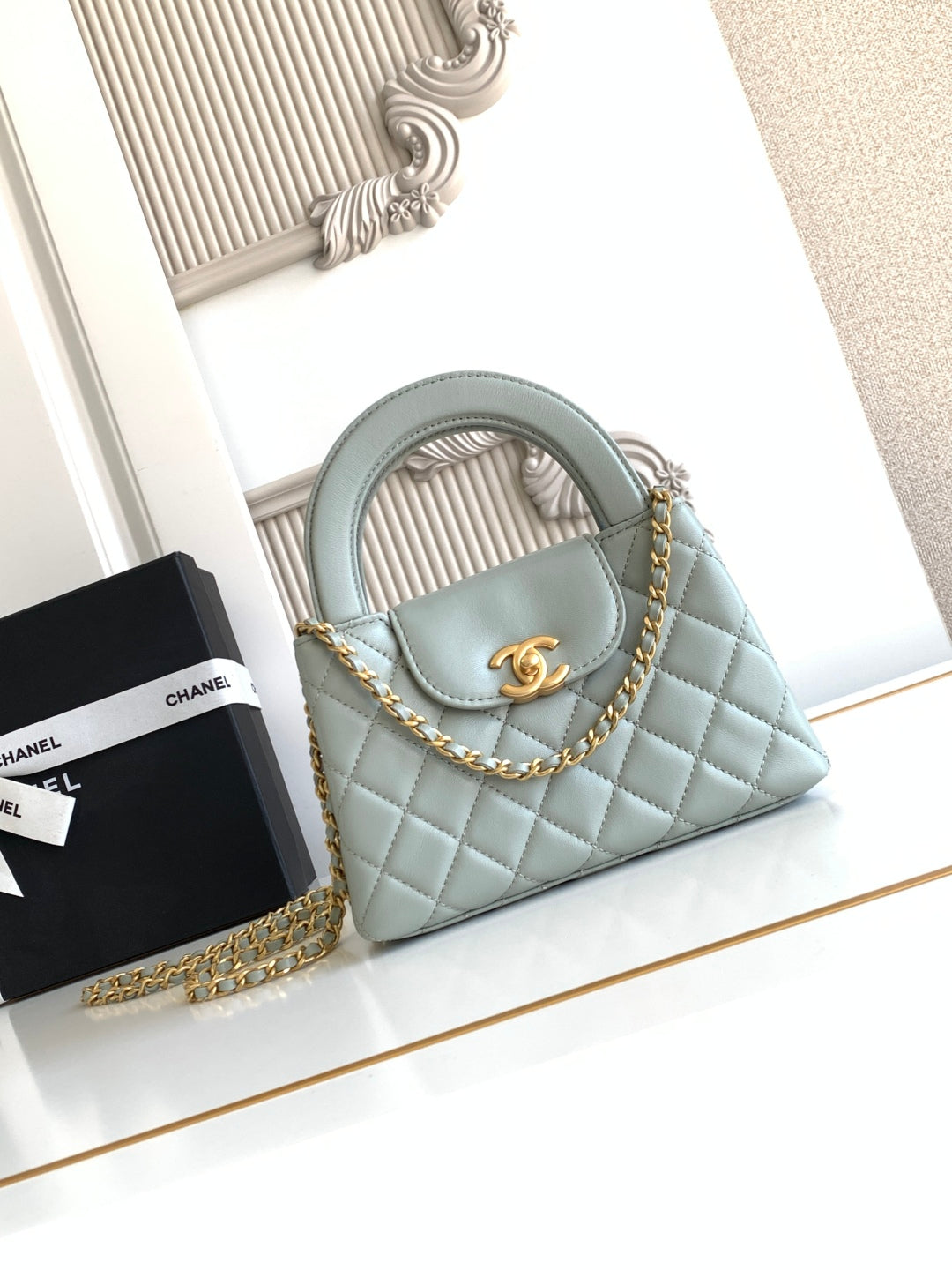 cc 24a nano 19cm kelly shopper bag pastel mint green lambskin